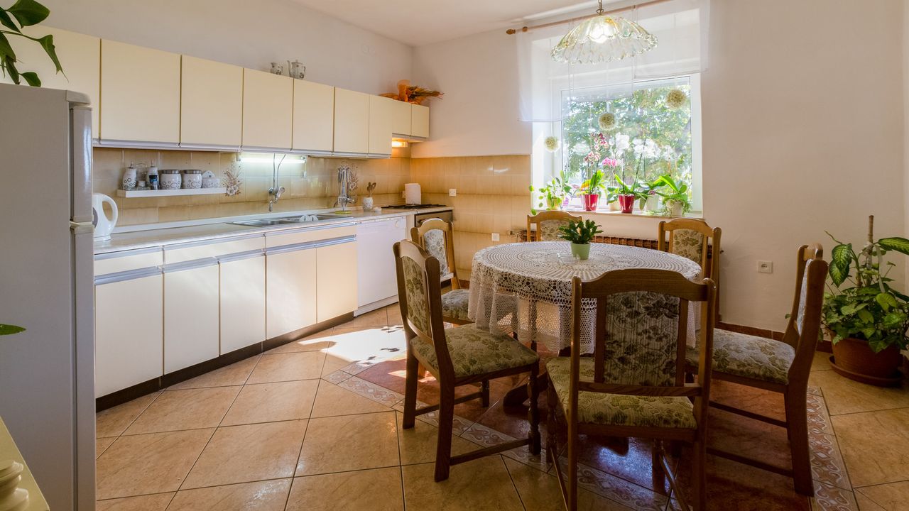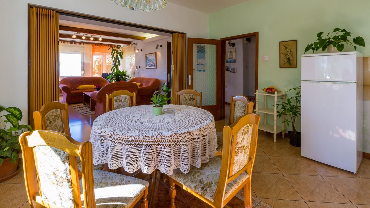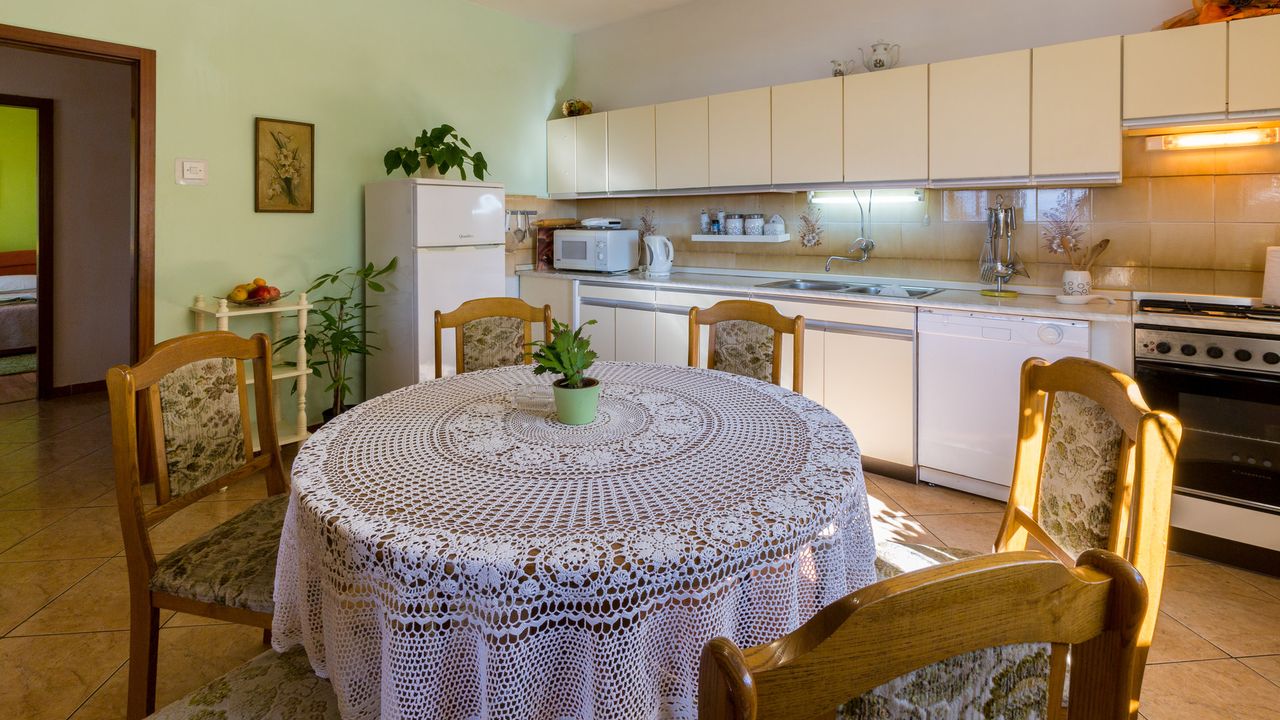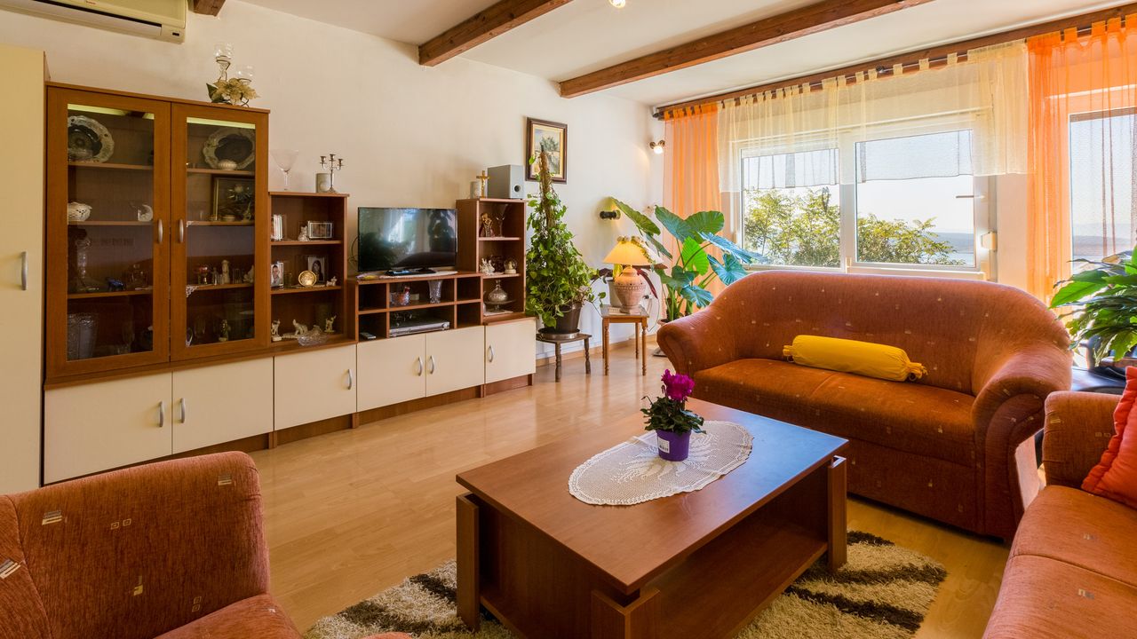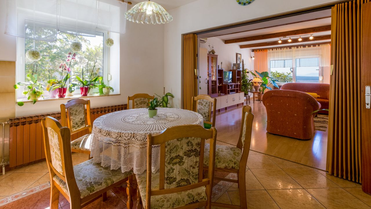 Diese grossr and auml;umige Ferienwohnung befindet sich im kleinem Fischerort Dramalj, dem Vorort von Crikvenica.Sehr gepflegte und ger and auml;umige Ferienwohnung f and uuml;r 4 Personen, ca. 110 m and sup2; gross, die Ferienwohnung befindet sich im Erdgescho and szlig; und besteht aus einem Wohnzimmer, einer grossen Kueche, drei Schlafzimmern, einem gem and uuml;tlichen Badezimmer und einer Terrasse in ruhiger Umgebung, ca. 700 m Vom Strand entfernt.