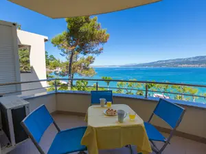 eigener Balkon, teilweise and uuml;berdacht, Meerblick, Bestuhlung, Sonnenschirm, Balkongr and ouml; and szlig;e: 6 m and sup2;