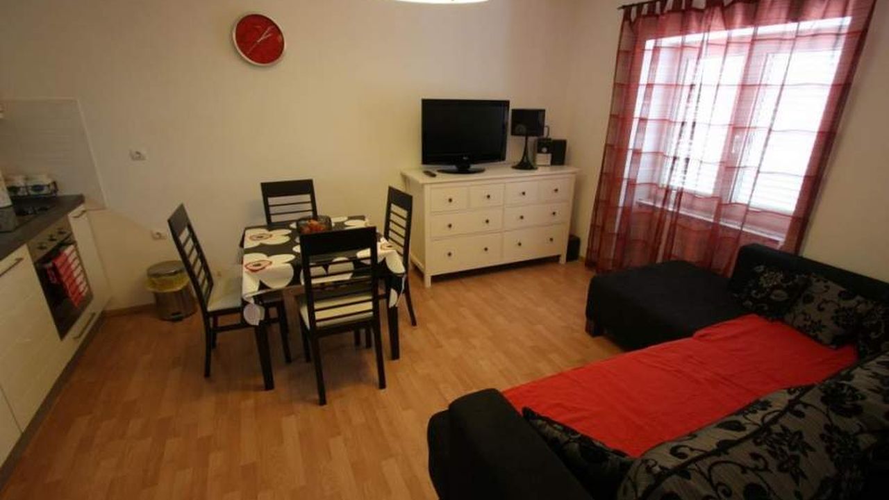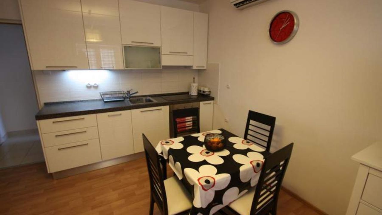 Sehr schön eingerichtete Ferienwohnung in unmittelbarer nähe des Sandstrandes von Crikvenica. Nicht weit von der Ferienwohnung findet man alles was man braucht wie z.B. ein Geschäft, eine Bäckerei und eine Strandbar.Diese gut ausgestattete Ferienwohnung hat 35 m² und teilt sich auf ein Wohn/Esszimmer und Küche, ein Schlafzimmer, ein Badezimmer und ein Balkon mit Blick auf den Sandstrand und das Meer.Wohnbereich: