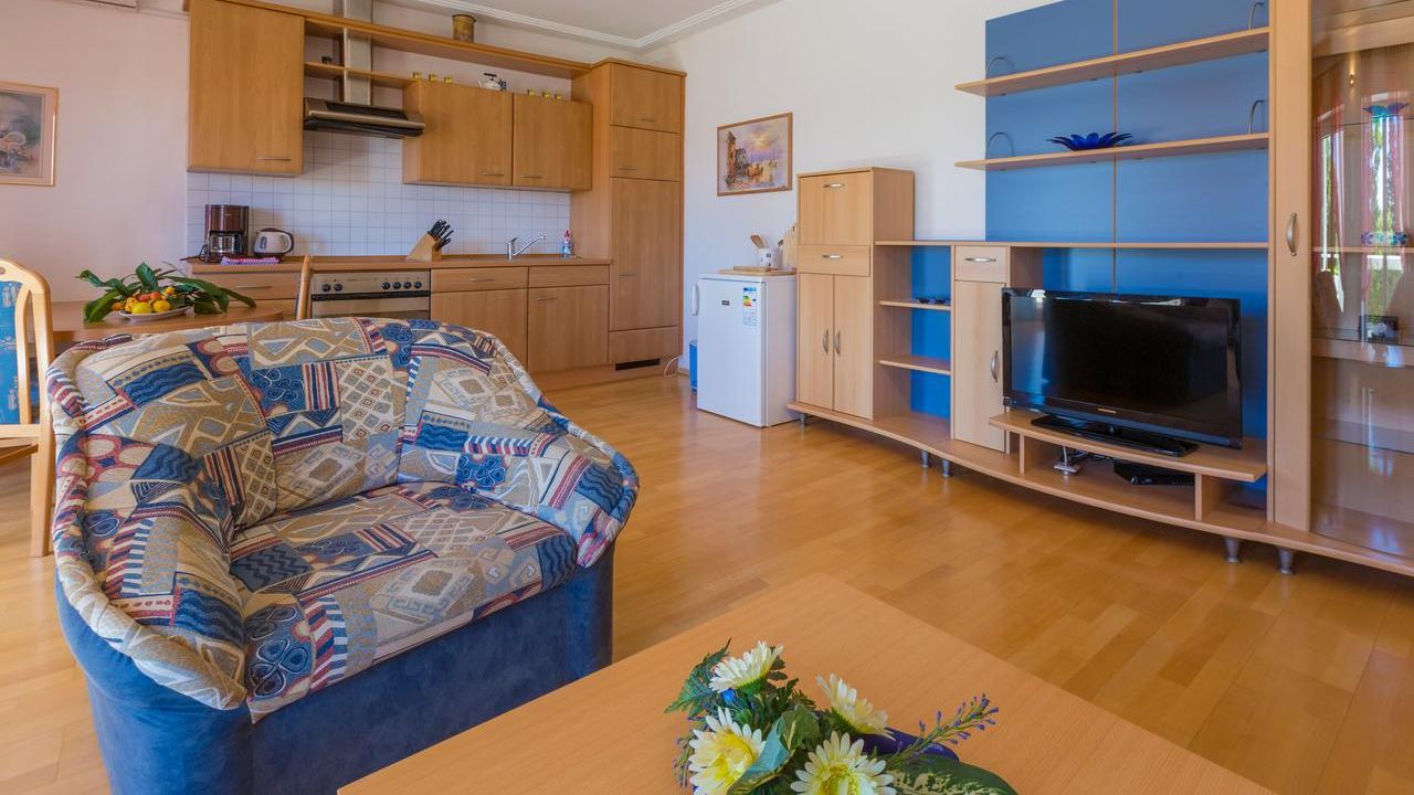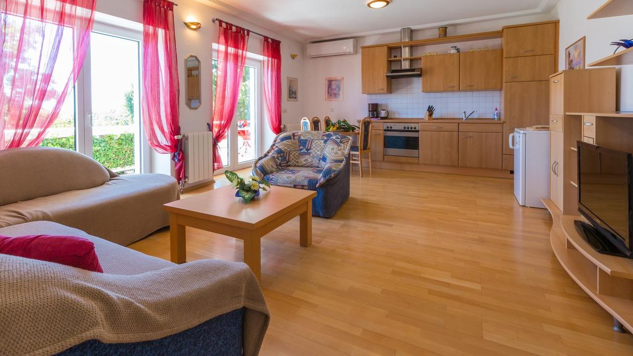 In der N and auml;he vom bekanntem Sandstrand von Crikvenica befindet sich dieses Feriendomizil. Durch die gute Lage ist es kaum n and ouml;tig das Fahrzeug zu benutzen da man zu Fuss alles sehr schnell erreicht.Im 1. Obergeschoss eines Familienhauses findet man diese komfortable Ferienunterkunft f and uuml;r 4 Personen. Ausgestattet mit eine grossen Wohn/Esszimmer und K and uuml;che, zwei Schlafzimmer und zwei Badezimmer ergeben diese eine Wohnfl and auml;che von 90 m and sup2;.