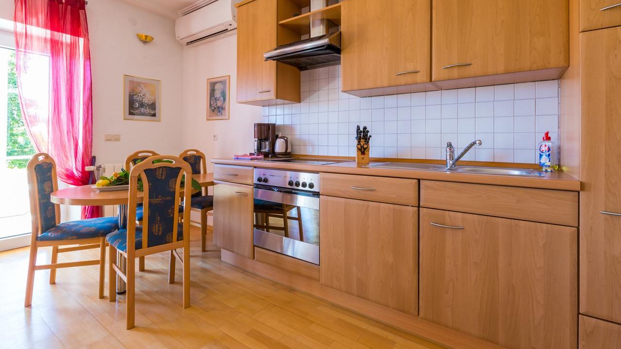 In der beliebten Urlaubsort Crikvenica befinden sich vier gem and uuml;tliche Ferienwohnungen, die sich nur einen kurzen Spaziergang vom Sandstrand entfernt befinden. Die Wohnungen verteilen sich auf drei Etagen der Villa: eine im Erdgeschoss, zwei im ersten Stock und eine im zweiten Stock. Von den oberen Etagen bietet sich ein sch and ouml;ner Blick auf das Meer, der die entspannte Urlaubsatmosph and auml;re noch verst and auml;rkt.Die Wohnungen sind gut ausgestattet mit SAT-TV, Internetzugang und Klimaanlage f and uuml;r h and ouml;chsten Komfort. Rund um das Haus erstreckt sich ein gepflegter Garten, der den G and auml;sten eine angenehme Atmosph and auml;re bietet. Zudem steht ein privater, verschlossener und and uuml;berdachter Parkplatz zur Verf and uuml;gung. Grillen ist auf dem Grundst and uuml;ck jedoch nicht erlaubt.