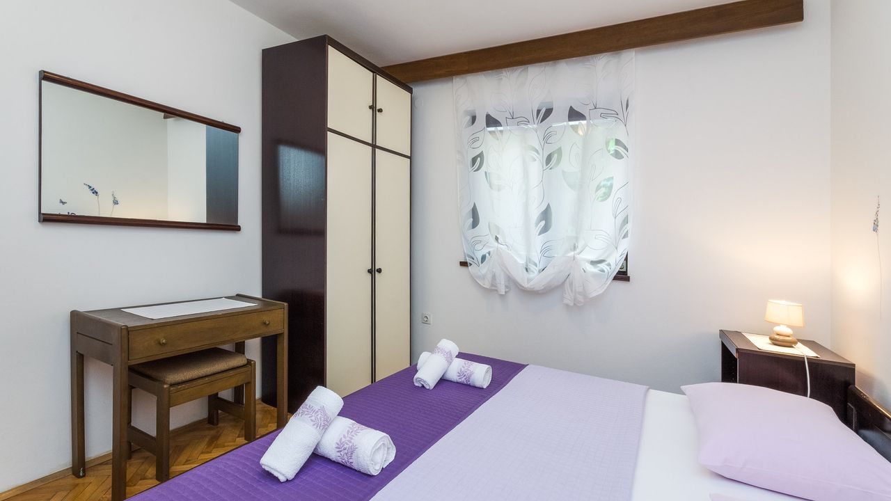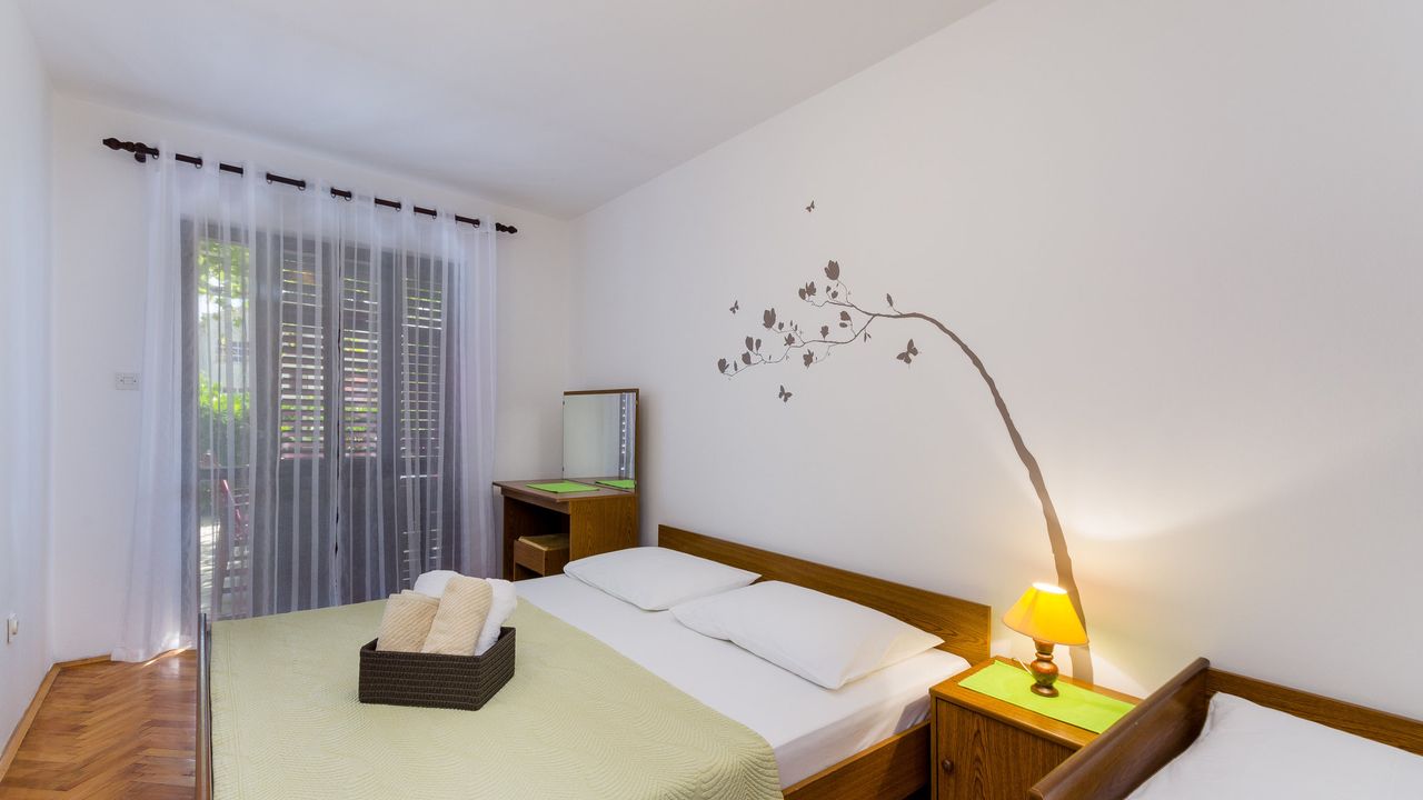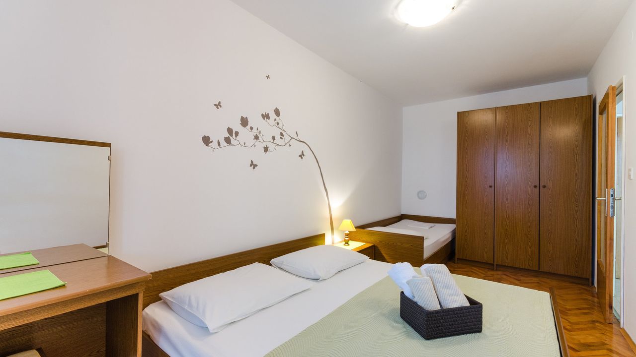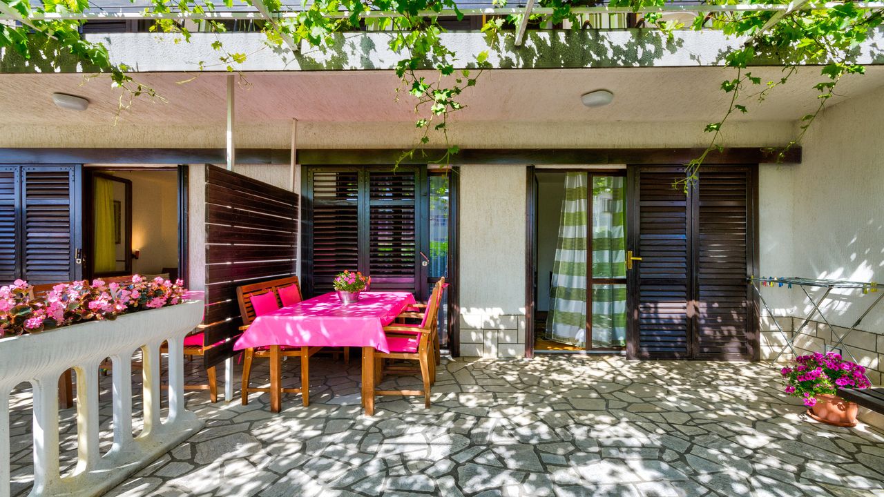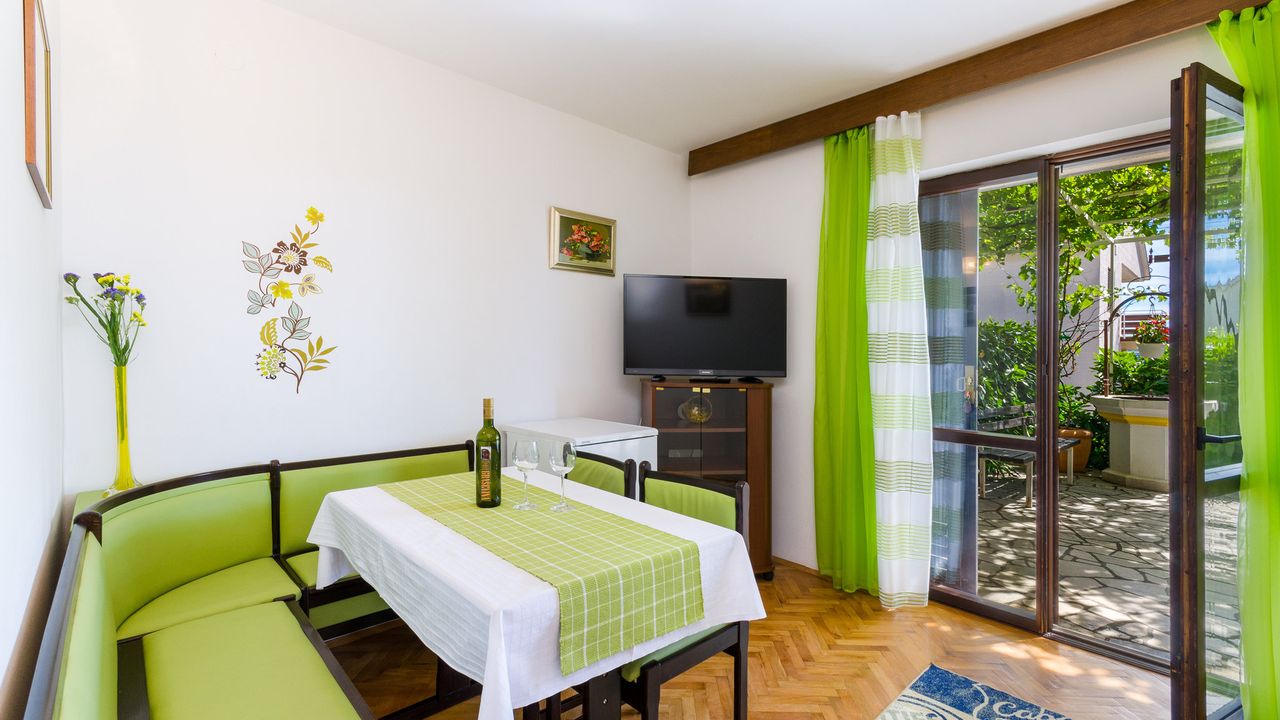 In einer ruhigen Umgebung des beliebten Urlaubsortes Crikvenica befindet sich dieses gepflegte Haus mit drei Ferienwohnungen.Erdgeschosswohnung f and uuml;r max. 5 Personen teilt sich auf zwei Schlafzimmer, zwei Badezimmer, Wohn/Esszimmer und K and uuml;che im selben Raum.