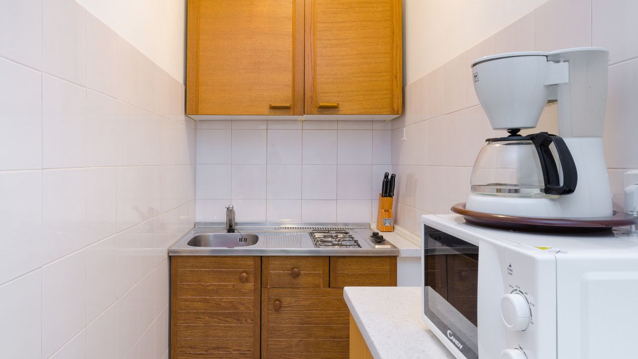 K and uuml;che, Geschirr, K and uuml;chenhandt and uuml;cher, Elektroherd, Kochplatten: 2, K and uuml;hlschrank mit Gefrierfach, Filterkaffeemaschine