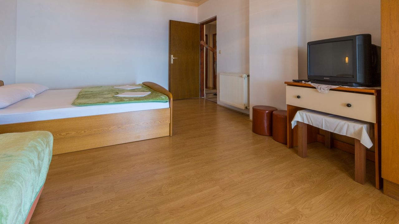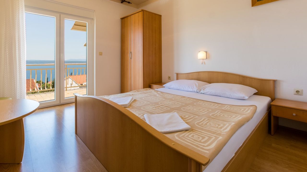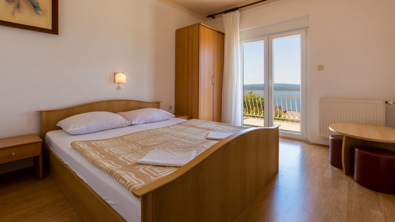 Doppelzimmer, Doppelzimmer mit Doppelbett, Balkon, Meerblick, Parkett, Teppichboden