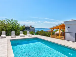 Dieses au and szlig;ergew and ouml;hnliche Familienhaus befindet sich in einer ruhigen Gegend von Crikvenica, oberhalb des Stadtzentrums, und bietet zwei separate Wohneinheiten, ideal f and uuml;r Familien oder Gruppen von Freunden.Die Wohnung im Erdgeschoss verf and uuml;gt and uuml;ber ein ger and auml;umiges Wohnzimmer, das nahtlos mit dem Essbereich und der modernen K and uuml;che verbunden ist, was sie ideal f and uuml;r Geselligkeit und Entspannung macht. Sie umfasst zwei Schlafzimmer and ndash; eines mit einem Doppelbett und einem zus and auml;tzlichen Einzelbett sowie eines mit einem Doppelbett and ndash; und ein modernes Badezimmer. Von dieser Wohnung aus haben Sie direkten Zugang zur Terrasse und zum Pool, was zus and auml;tzlichen Luxus und Komfort bietet.
