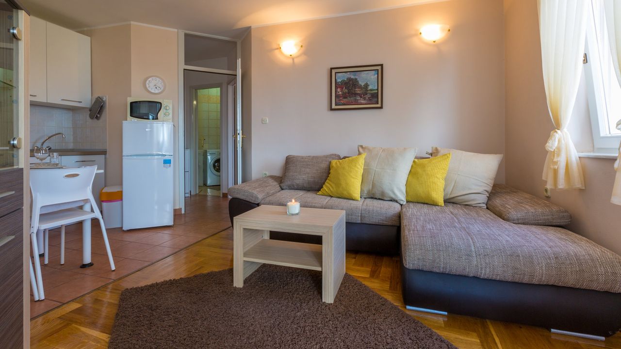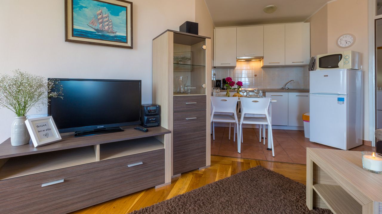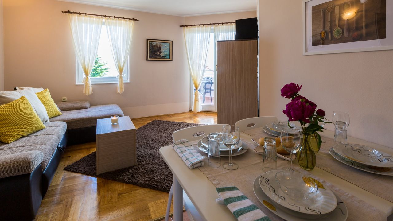 2014 NEU eingerichtete Ferienwohnung oberhalb des Zentrums und des Sandstrandes von Crikvenica. Der n and auml;chste Strand ist der bekannte Sandstrand von Crikvenica.Die Ferienwohnung ist sehr geschmackvoll eingerichtet, verf and uuml;gt and uuml;ber ein Schlafzimmer, ein Badezimmer, ein Wohn-Esszimmer mit K and uuml;che in der sich eine ausziehbare Schlafcouch f and uuml;r zwei Personen befindet und einen sch and ouml;nen Balkon mit Meerblick.