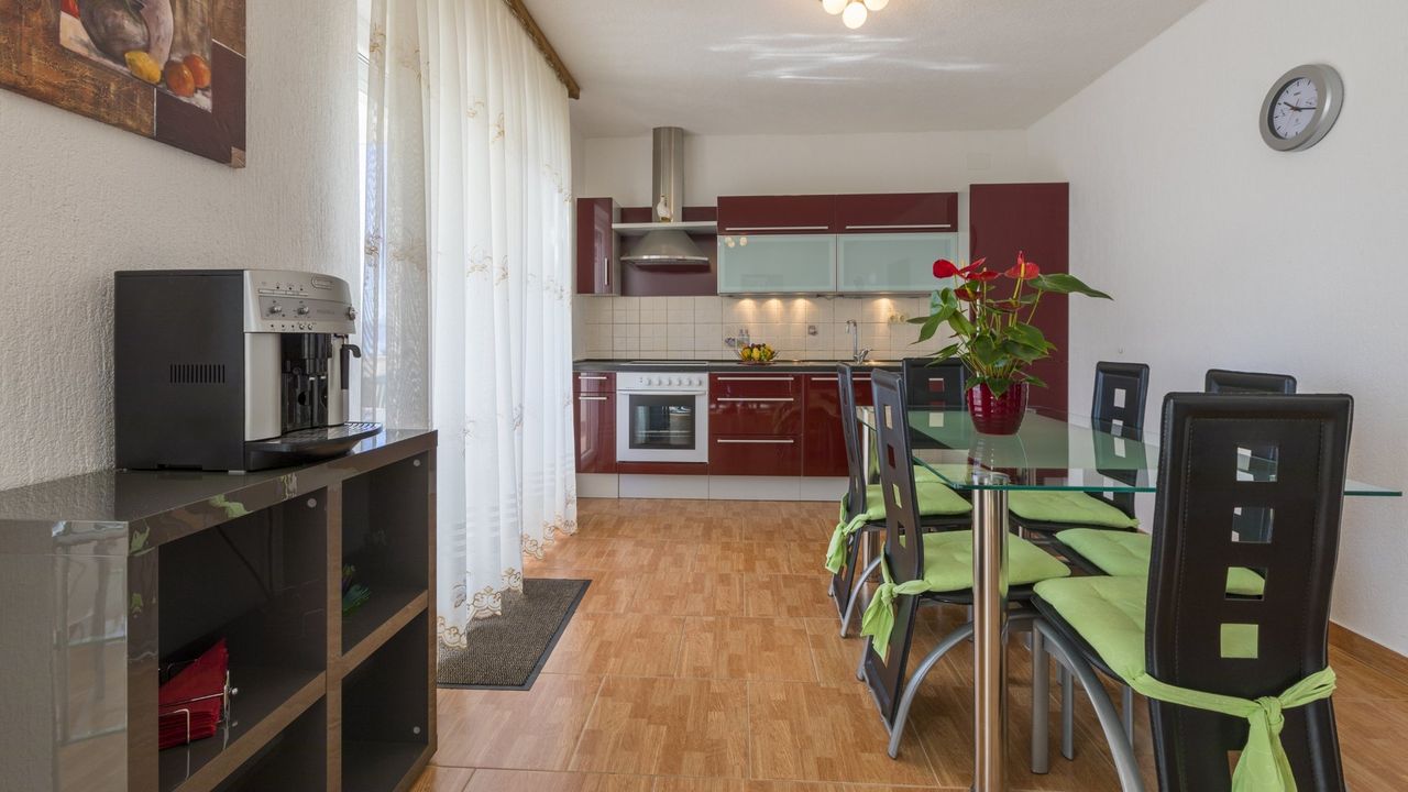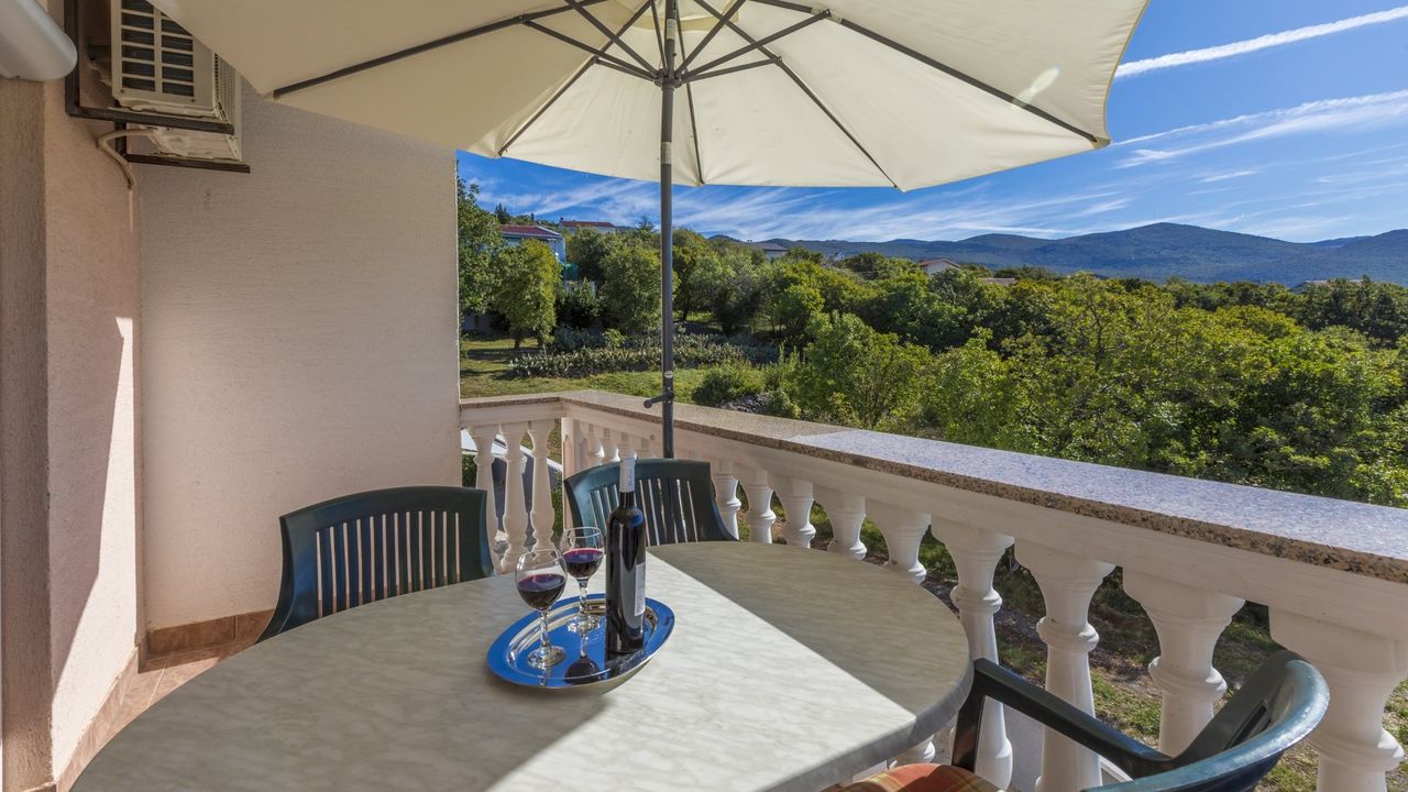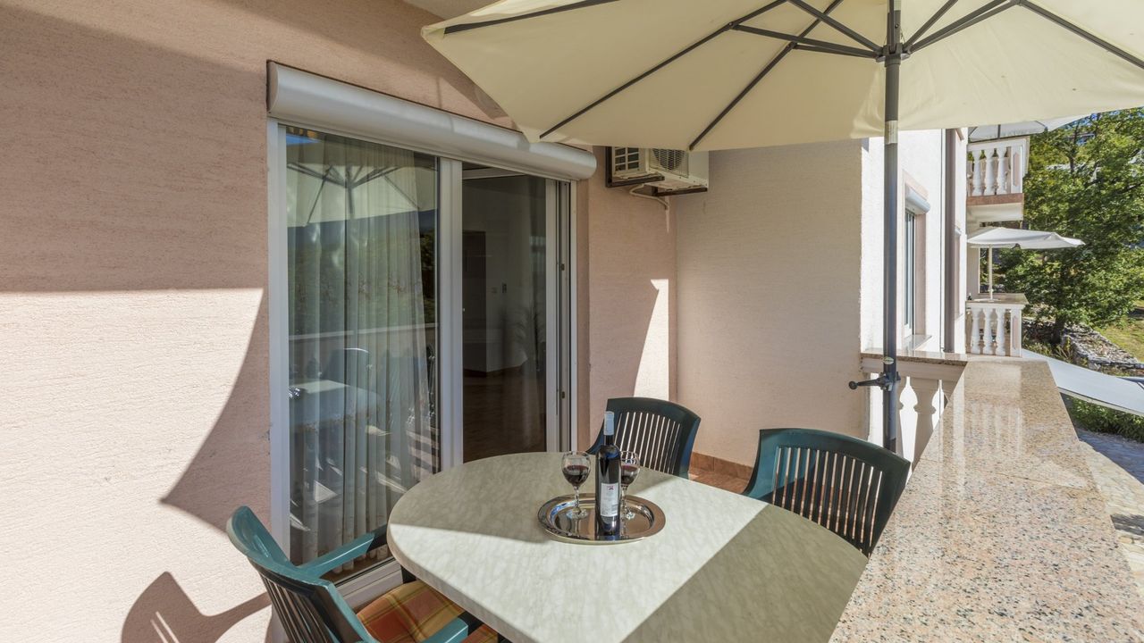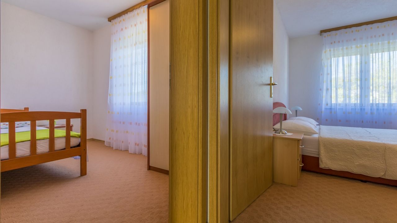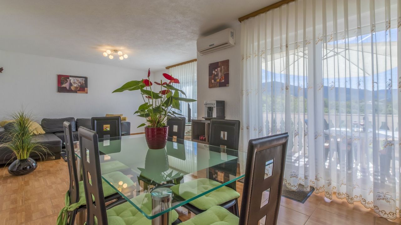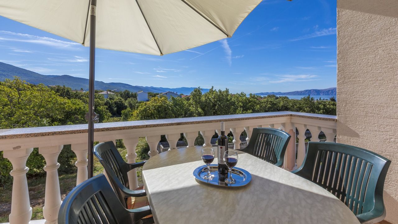 Das Apartment besteht aus einem gem and uuml;tlichen Wohn/Esszimmer mit K and uuml;che, 3 Schlafzimmer und 1 Badezimmer. Von der K and uuml;che aus hat man Zugang zum teilweise and uuml;berdachtem Balkon der einen fantastischen Ausblick auf das Meer und die Insel Krk hat.