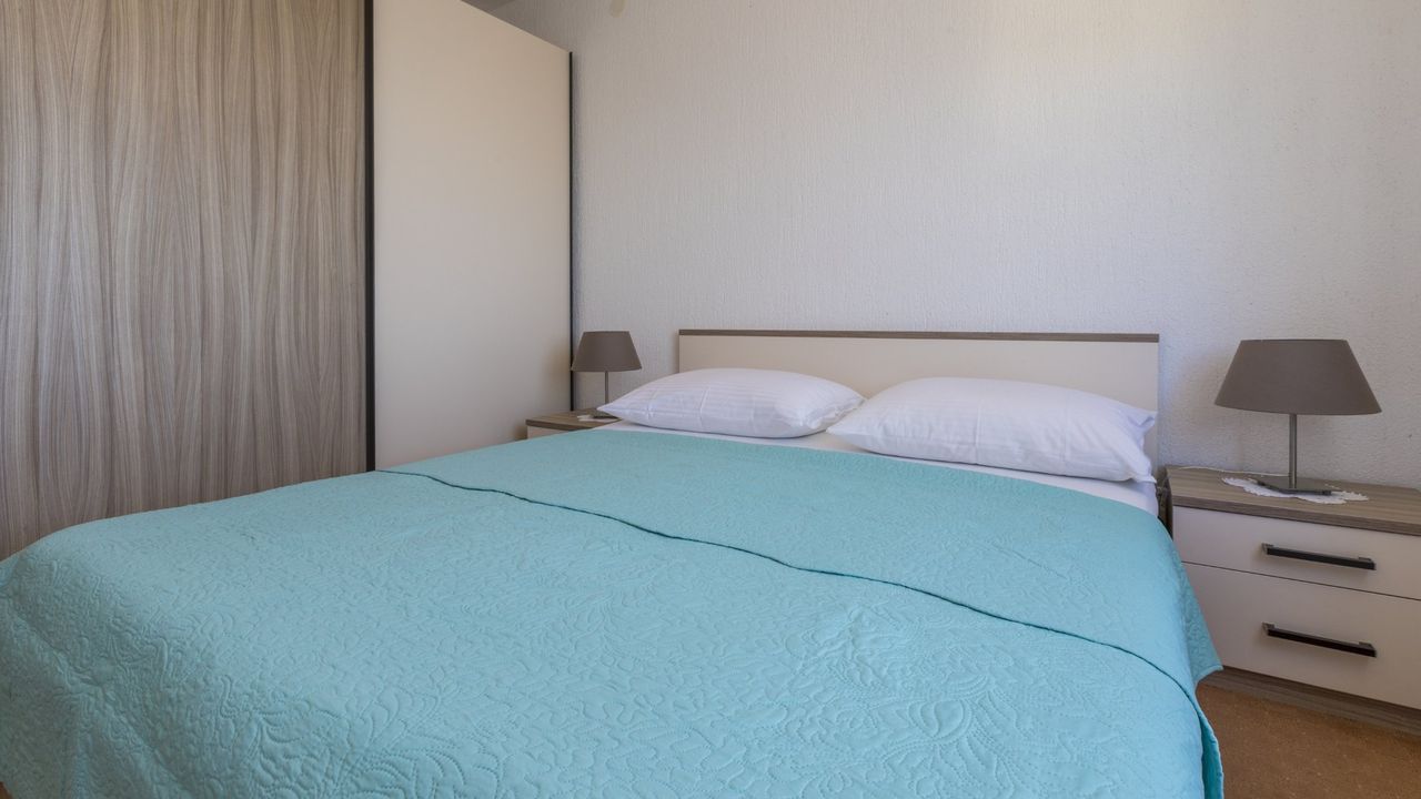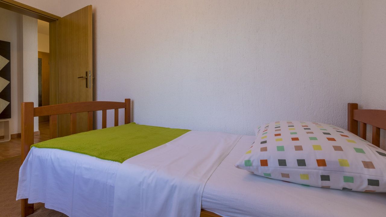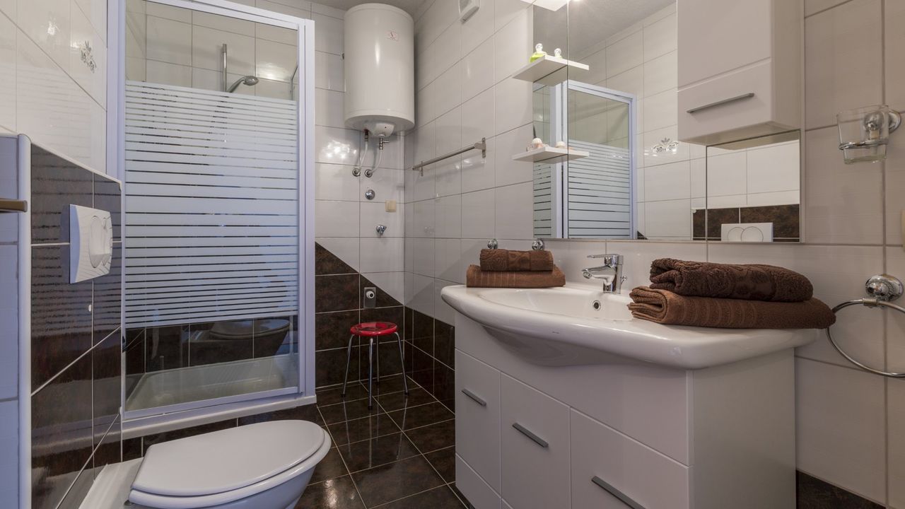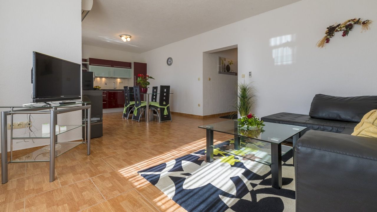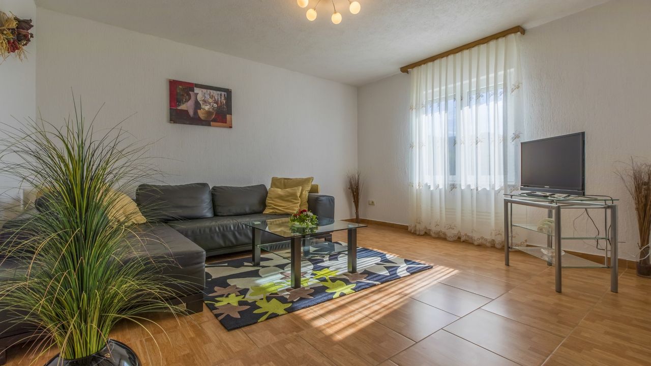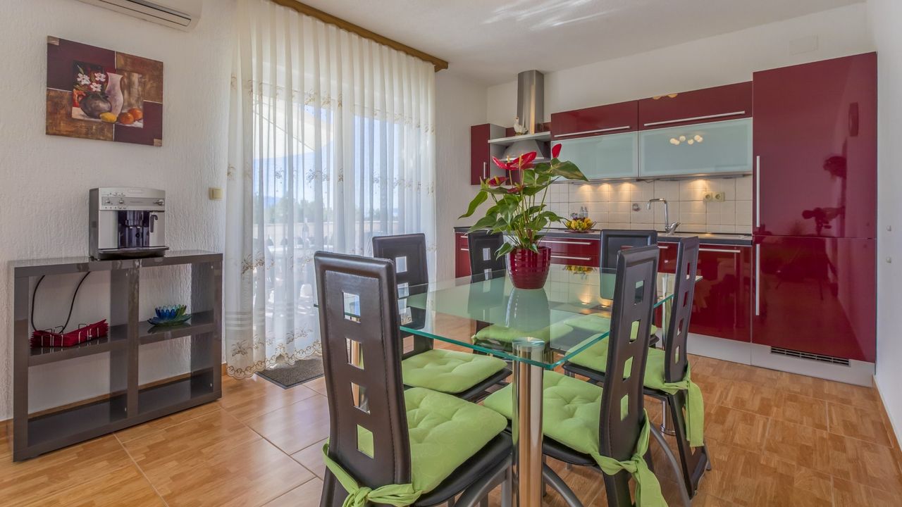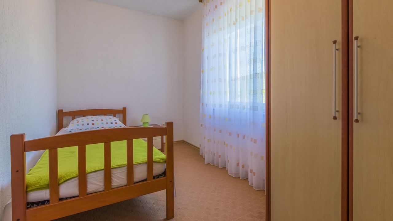 Das Apartment besteht aus einem gem and uuml;tlichen Wohn/Esszimmer mit K and uuml;che, 3 Schlafzimmer und 1 Badezimmer. Von der K and uuml;che aus hat man Zugang zum teilweise and uuml;berdachtem Balkon der einen fantastischen Ausblick auf das Meer und die Insel Krk hat.