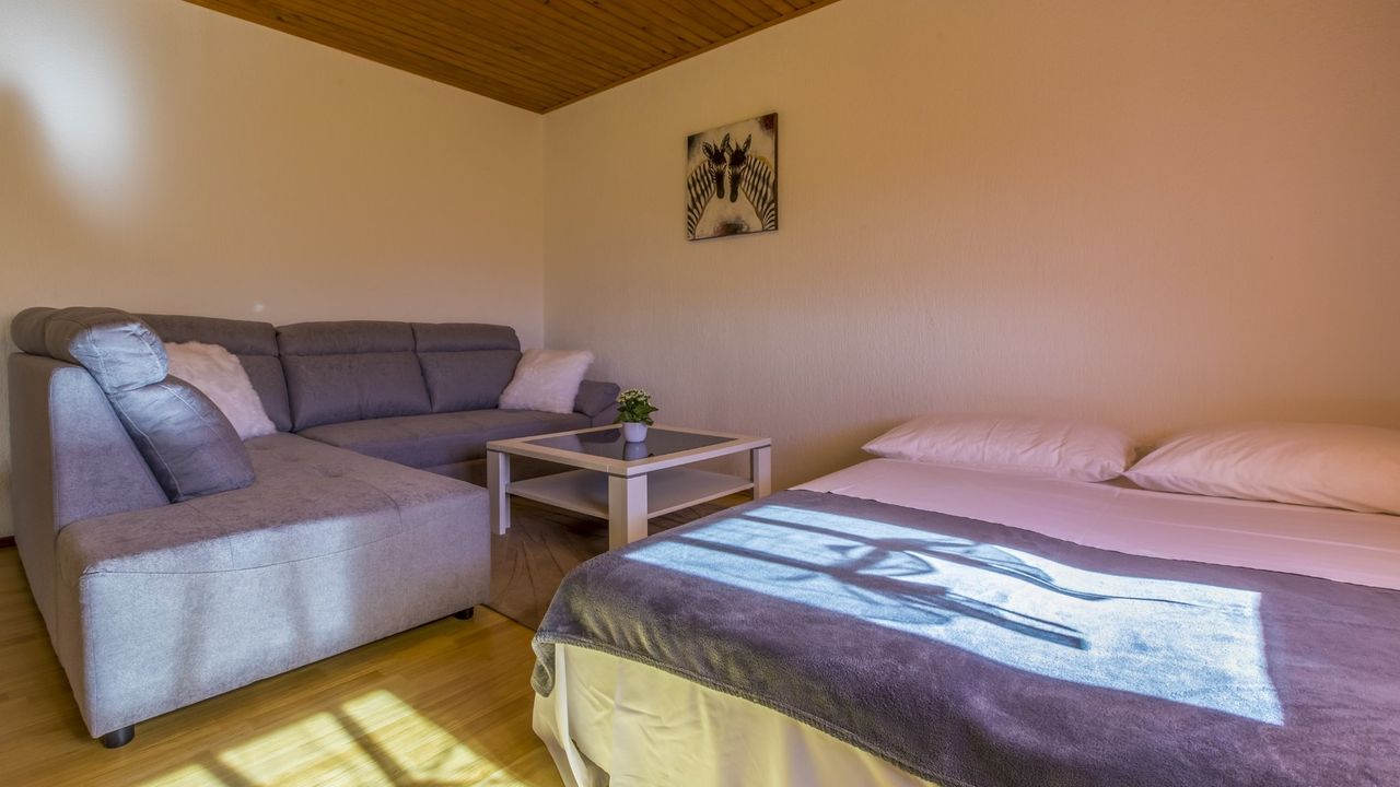 Doppelzimmer, Doppelzimmer mit Doppelbett, Laminat