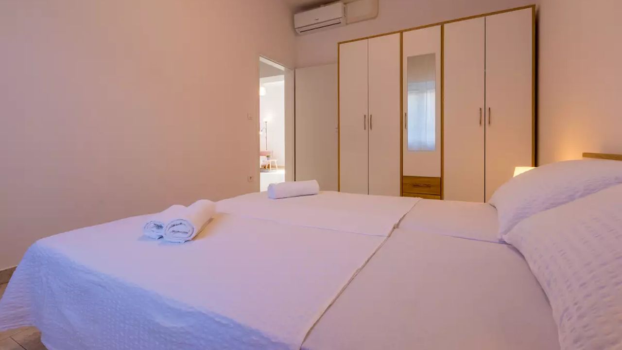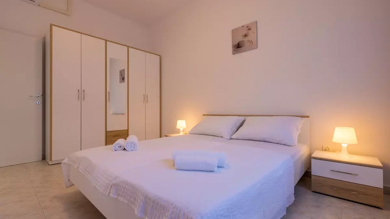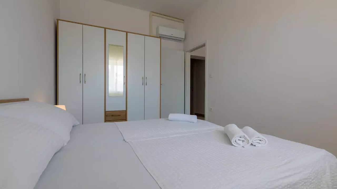 Diese sch and ouml;ne Ferienunterkunft hat 70 m and sup2; und befindet sich im Erdgeschoss eines Familienhauses. Nicht weit nur 230 m zum Meer entfernt bietet diese komfortable Wohnung einen sch and ouml;nen Familienurlaub.Aufgeteilt auf ein Wohn- und Esszimmer sind ein Raum, eine K and uuml;che, 2 Schlafzimmer, ein Badezimmer und eine seperate Toilette. Das Wohnzimmer sowie beide Schlafzimmer sind klimatisiert. Die eigene Terrasse ist m and ouml;bliert und hat einen sch and ouml;nen Meerblick.