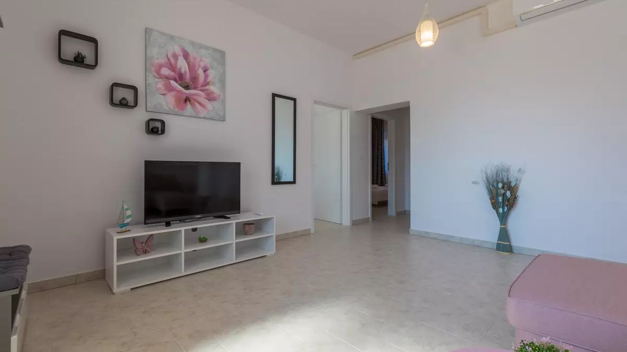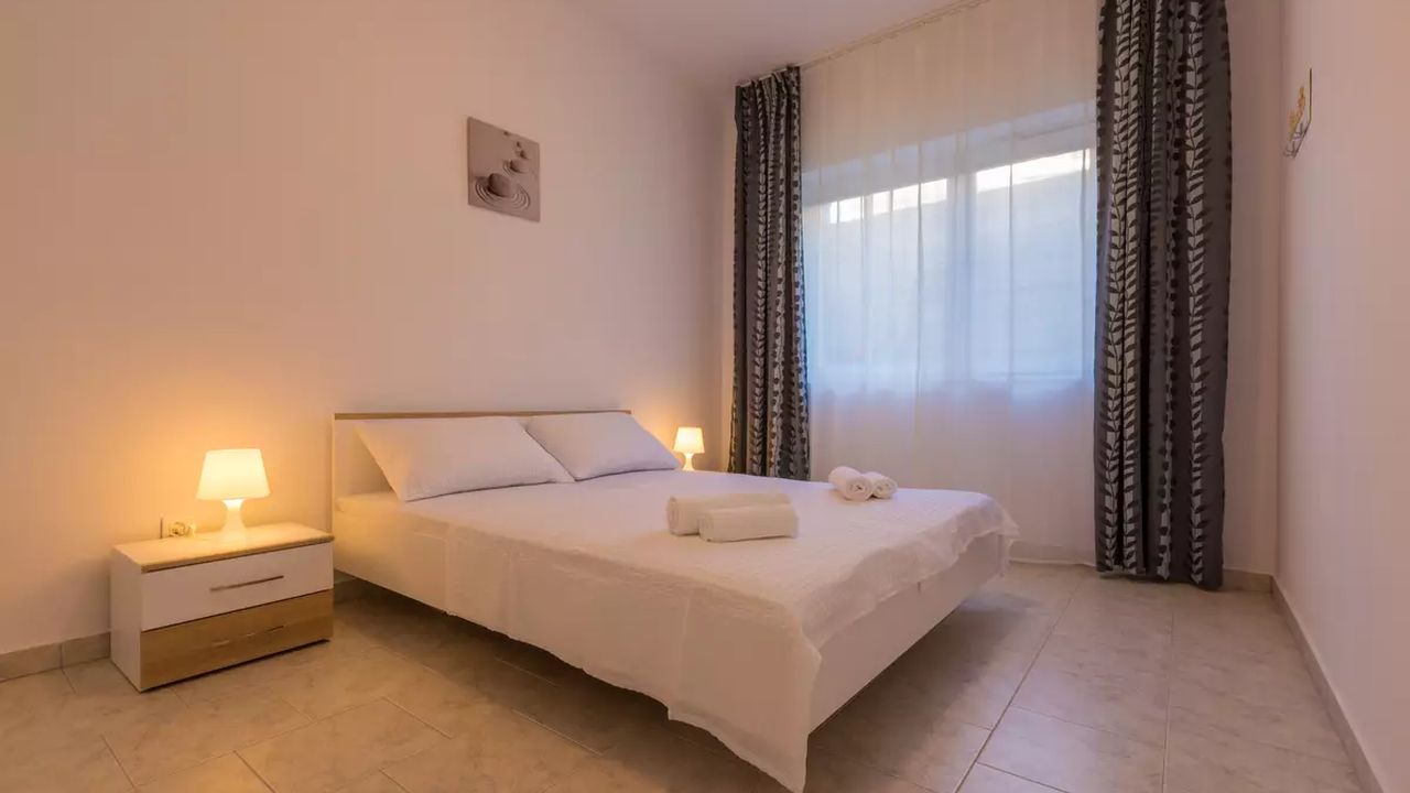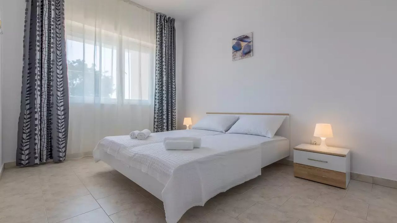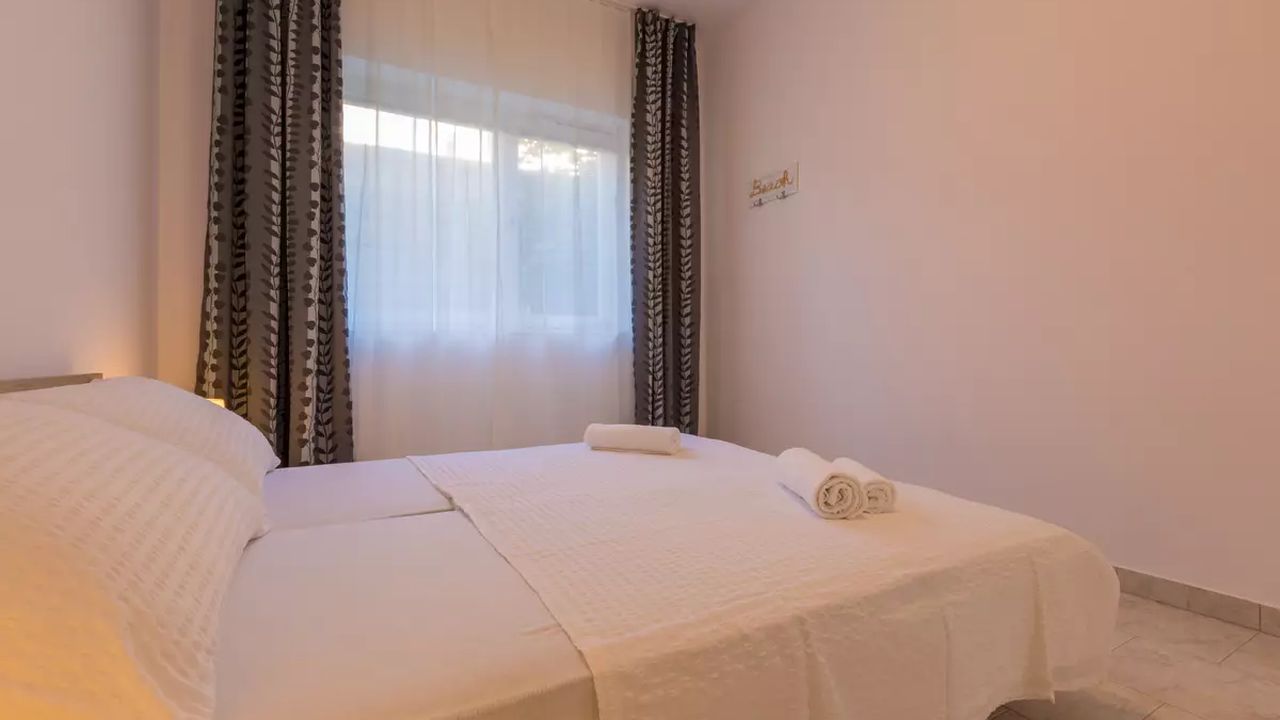 Diese sch and ouml;ne Ferienunterkunft hat 70 m and sup2; und befindet sich im Erdgeschoss eines Familienhauses. Nicht weit nur 230 m zum Meer entfernt bietet diese komfortable Wohnung einen sch and ouml;nen Familienurlaub.Aufgeteilt auf ein Wohn- und Esszimmer sind ein Raum, eine K and uuml;che, 2 Schlafzimmer, ein Badezimmer und eine seperate Toilette. Das Wohnzimmer sowie beide Schlafzimmer sind klimatisiert. Die eigene Terrasse ist m and ouml;bliert und hat einen sch and ouml;nen Meerblick.