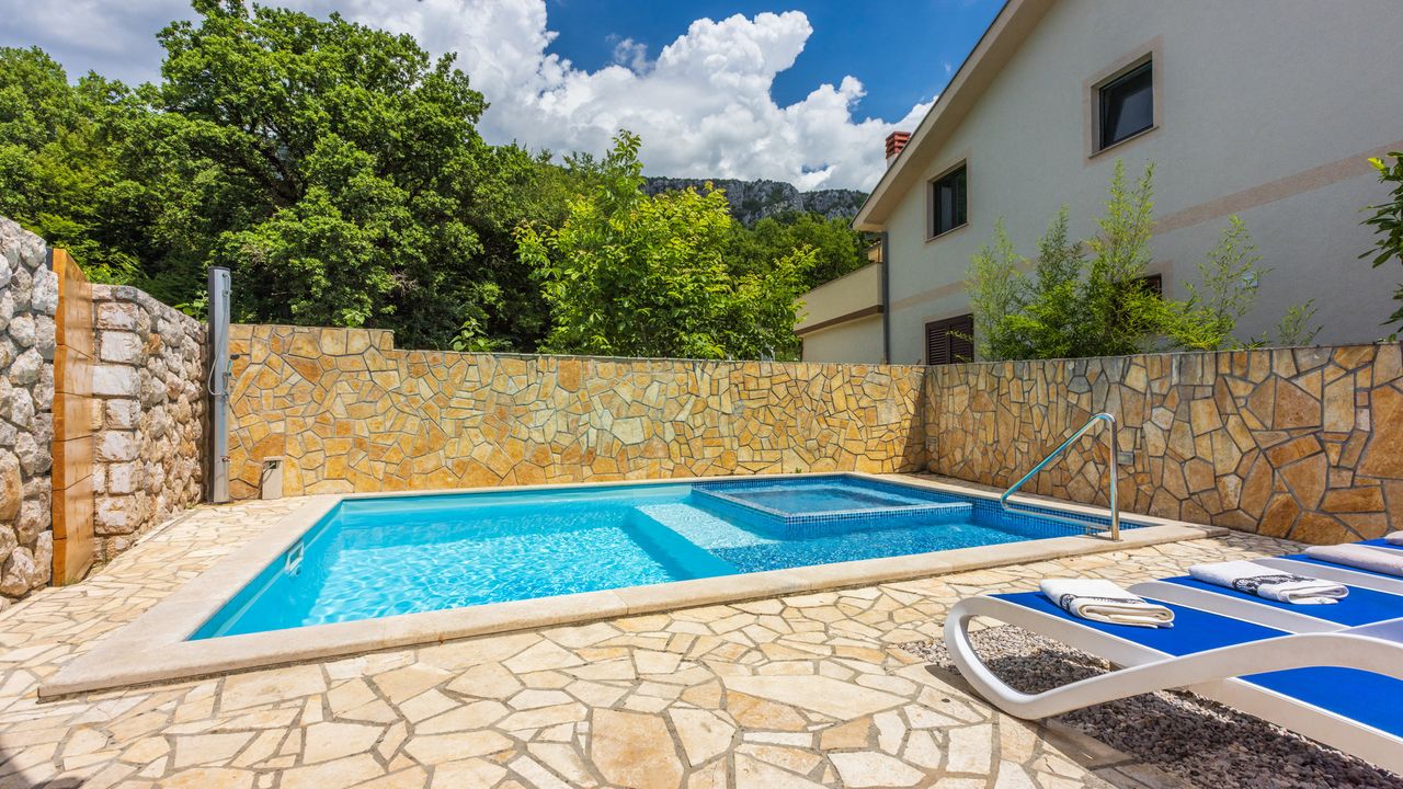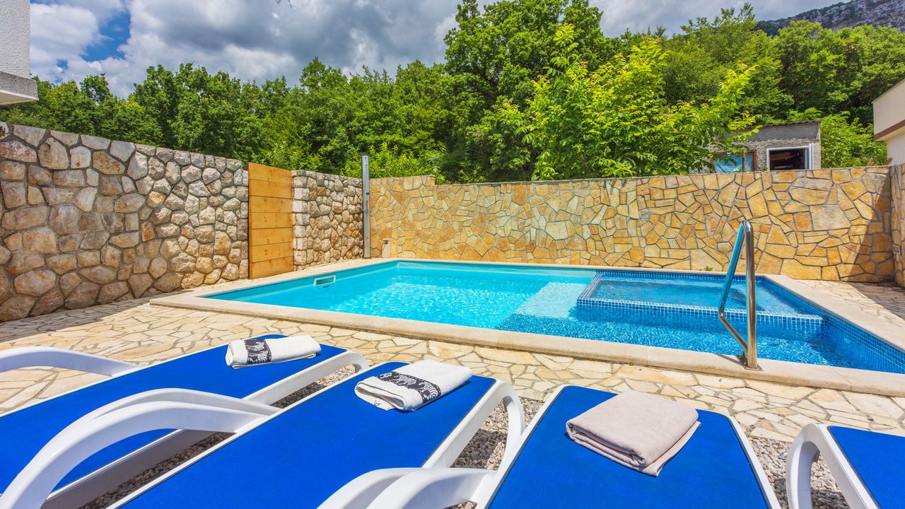 Der besonders gut geplante Swimingpoll mit Whirlpool ist das richtige um sich zu erfrischen. Gleich neben dem blauen Pool befindet sich eine schattige Terrasse mit einem Holzgrill.