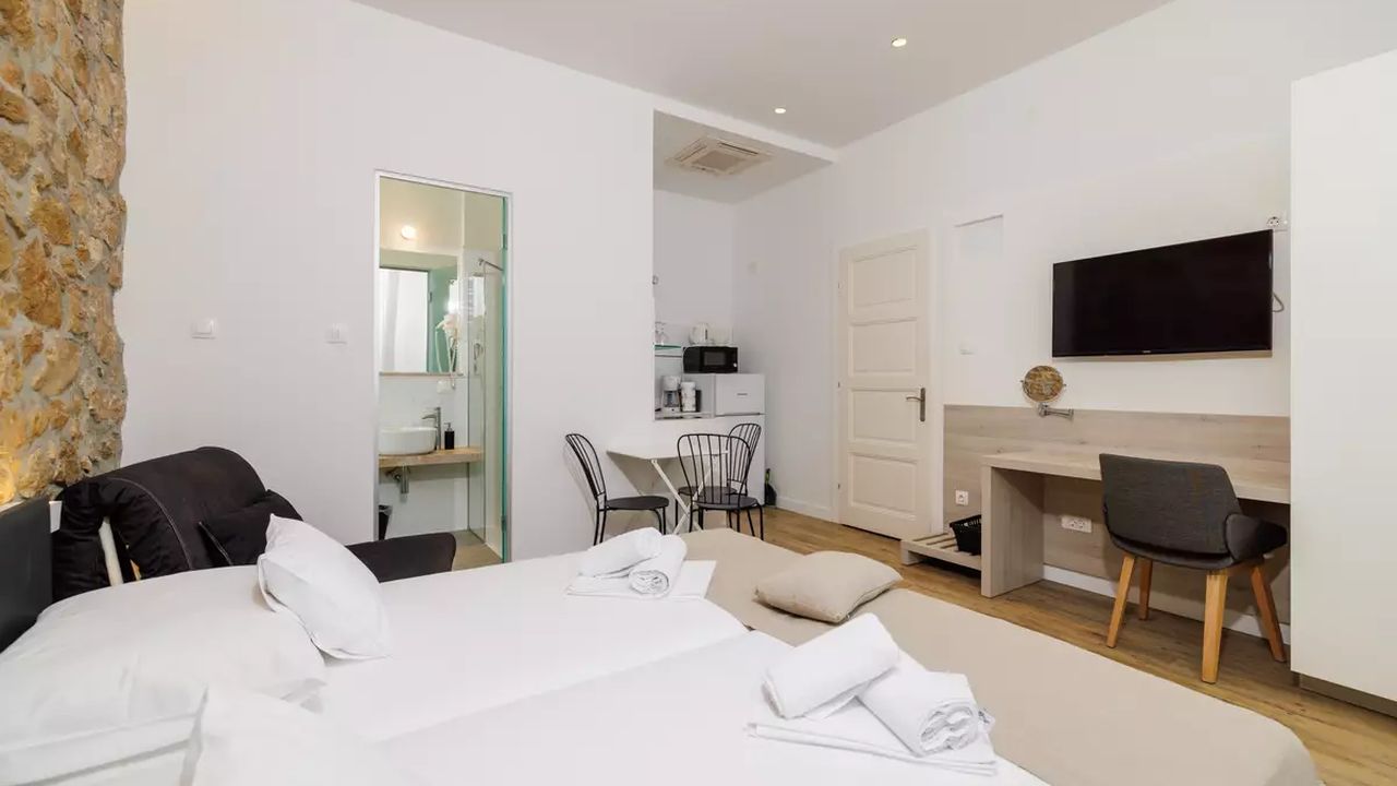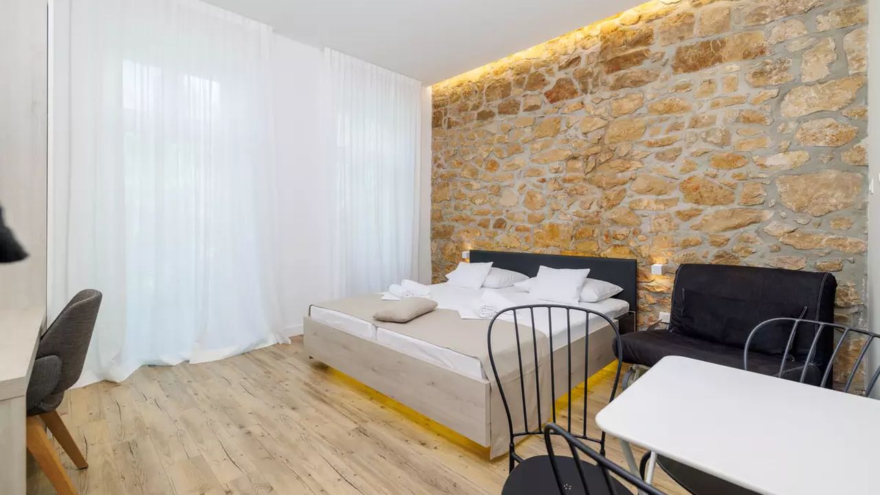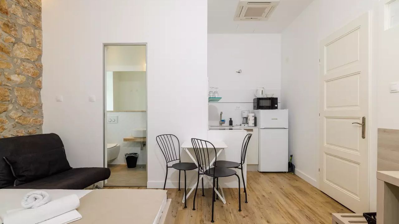 Modern und stylvoll renoviertes Studioapartment, nur einige Gehminuten vom beliebten Sandstrand entfernt.Das Studioapartment mit einem Schlafzimmer und K and uuml;che in einem Raum, einem Badezimmer und einem Balkon ist sehr geschmackvoll eingerichtet und befindet sich im 1. Erdgescho and szlig;. Der Balkon ist m and ouml;bliert und verf and uuml;gt and uuml;ber einen Meerblick.
