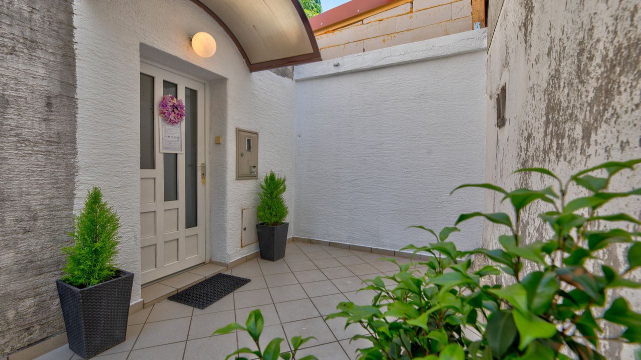 Im Erdgescho and szlig; ist ein Wohn/Esszimmer mit K and uuml;che, ein Schlafzimmer, eine separate Toilette und eine Terasse. Das Erdgescho and szlig; ist Klimatisiert.