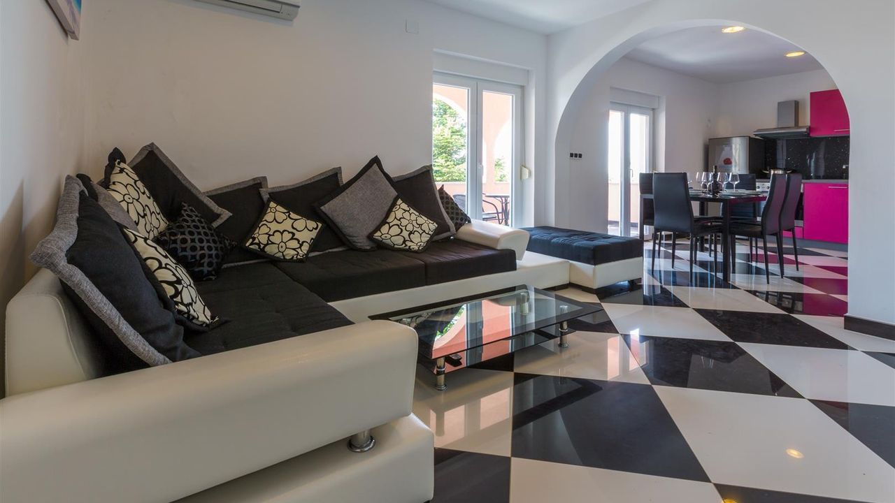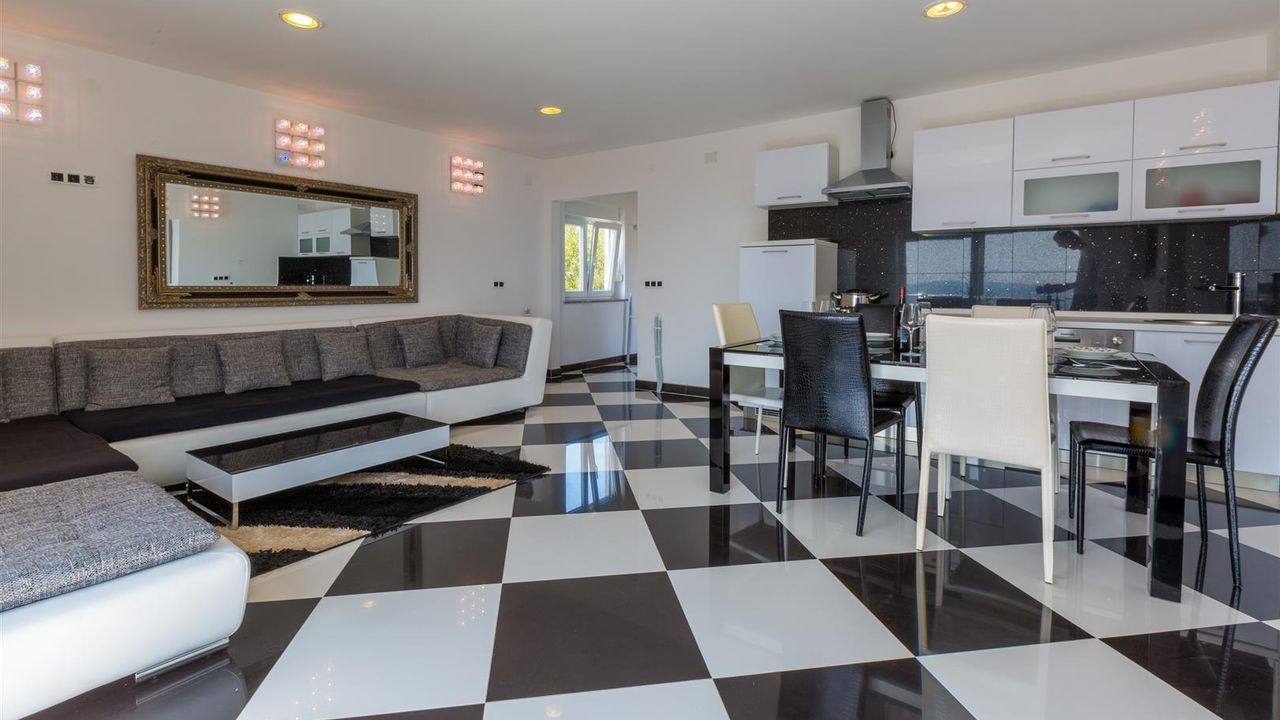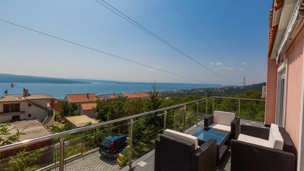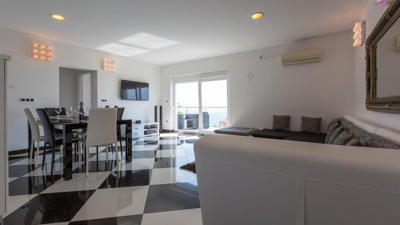 Diese ruhig gelegene Villa befindet sich im oberen Stadtteil vom beliebten Urlaubsort Crikvenica. Das Haus ist 2016 zum ersten mal in Vermietung.