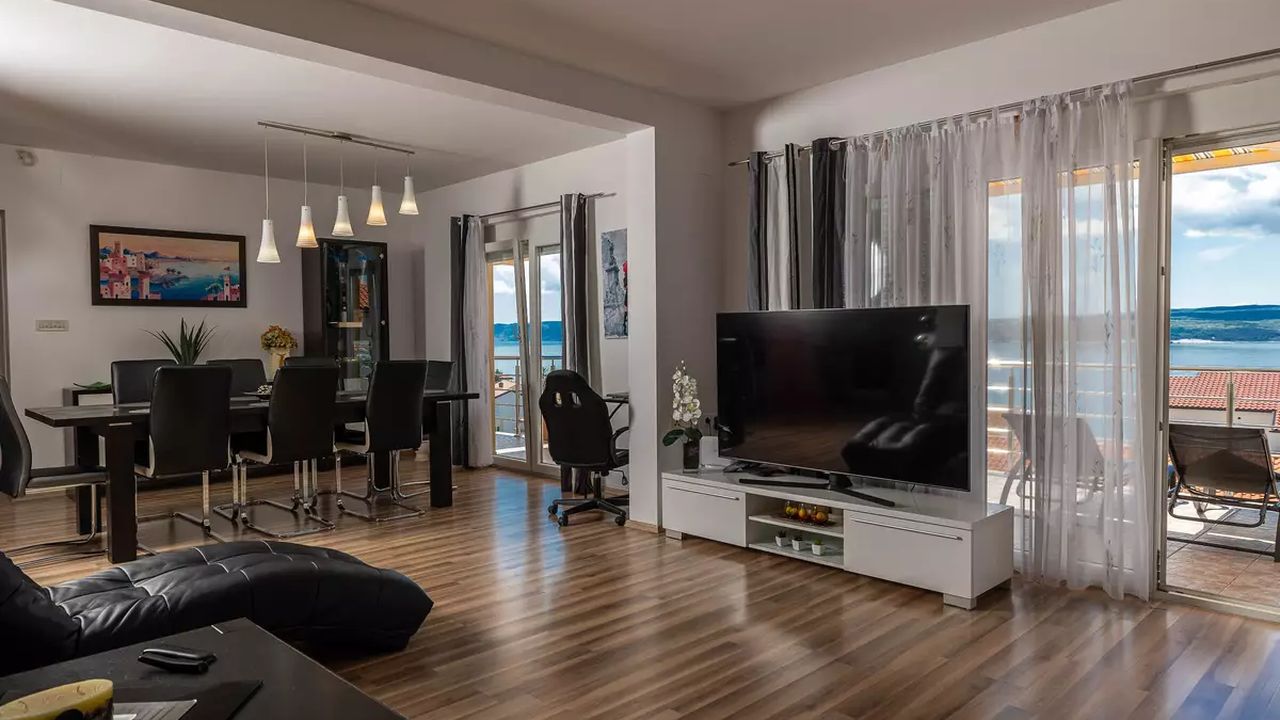 Diese stilvolle und modern eingerichtete Ferienunterkunft befindet sich in Dramalj, einem ruhigen Vorort von Crikvenica, und bietet h and ouml;chsten Komfort f and uuml;r einen unvergesslichen Urlaub. Die luxuri and ouml;se Penthouse-Wohnung umfasst ein gro and szlig;z and uuml;giges Wohn- und Esszimmer mit integrierter K and uuml;che, drei Schlafzimmer, zwei moderne Badezimmer und einen traumhaften Meerblick. Eine gemeinschaftlich genutzte Terrasse l and auml;dt zum Entspannen ein.