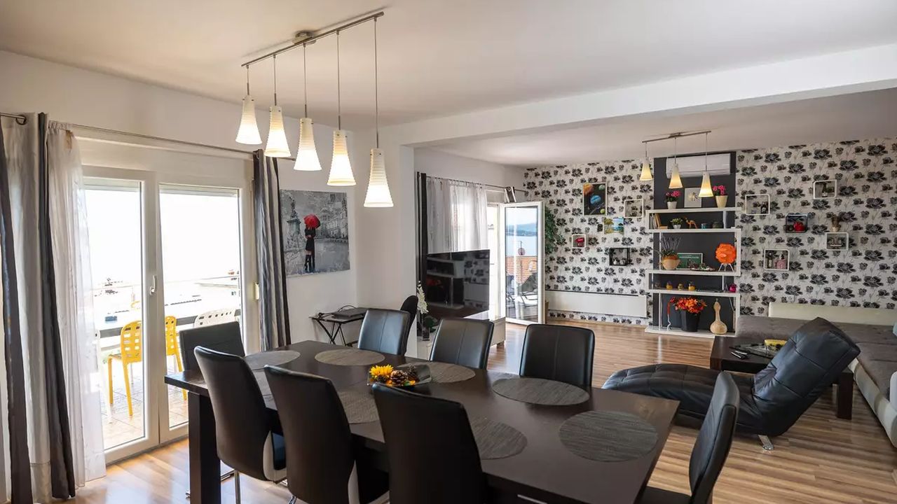 Diese stilvolle und modern eingerichtete Ferienunterkunft befindet sich in Dramalj, einem ruhigen Vorort von Crikvenica, und bietet h and ouml;chsten Komfort f and uuml;r einen unvergesslichen Urlaub. Die luxuri and ouml;se Penthouse-Wohnung umfasst ein gro and szlig;z and uuml;giges Wohn- und Esszimmer mit integrierter K and uuml;che, drei Schlafzimmer, zwei moderne Badezimmer und einen traumhaften Meerblick. Eine gemeinschaftlich genutzte Terrasse l and auml;dt zum Entspannen ein. and nbsp;Die Wohnung ist mit Highspeed-Internet, Klimaanlage, einer Grillm and ouml;glichkeit und einer Waschmaschine ausgestattet, um den Aufenthalt so angenehm wie m and ouml;glich zu gestalten. Die Lage der Unterkunft ist ideal: Nur 200 Meter trennen Sie vom Meer, w and auml;hrend ein Restaurant und ein Supermarkt jeweils in 100 Metern Entfernung liegen. and nbsp;