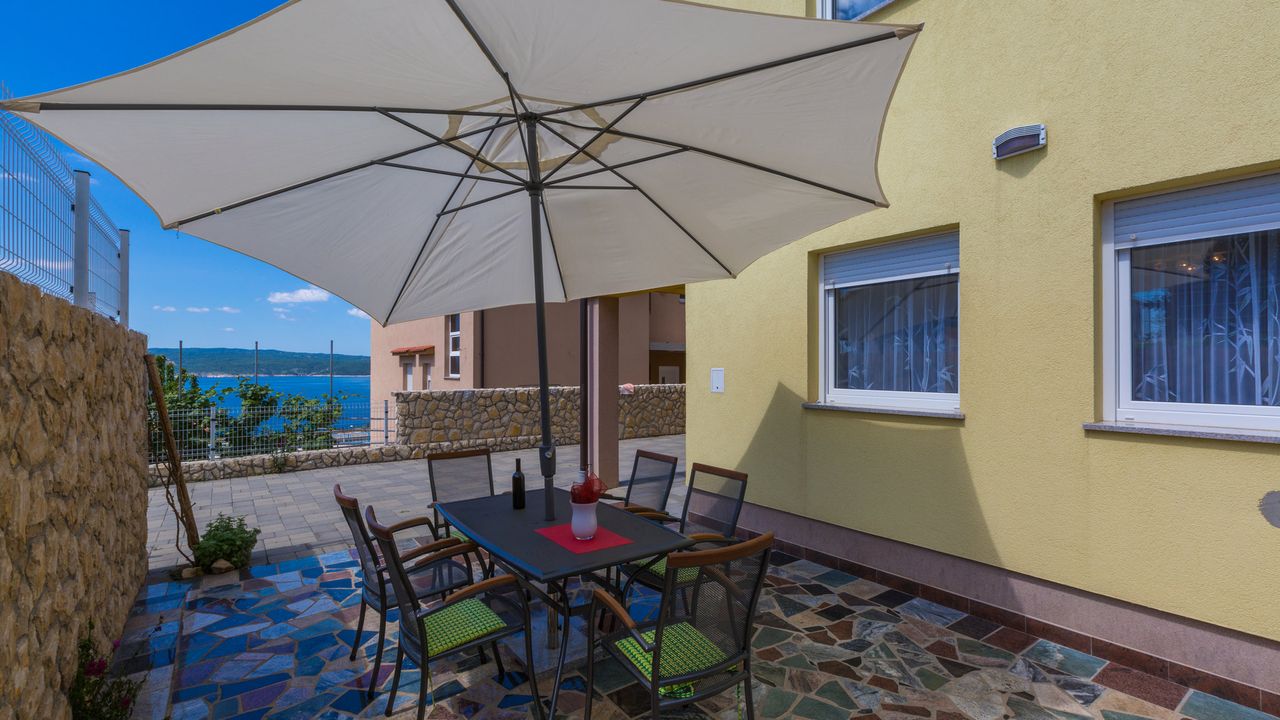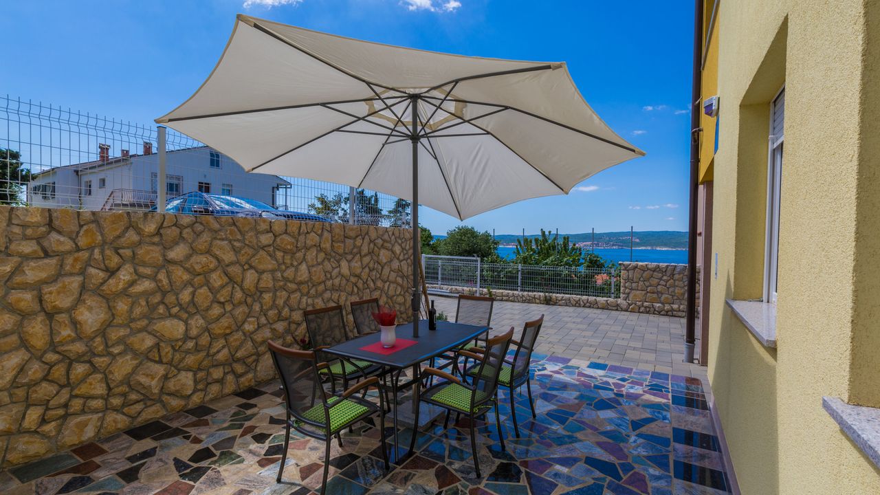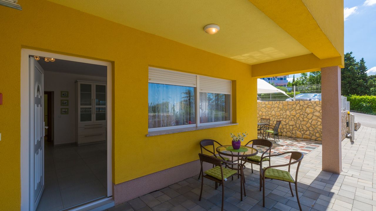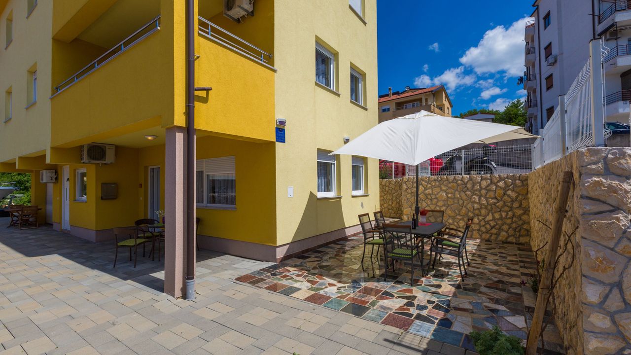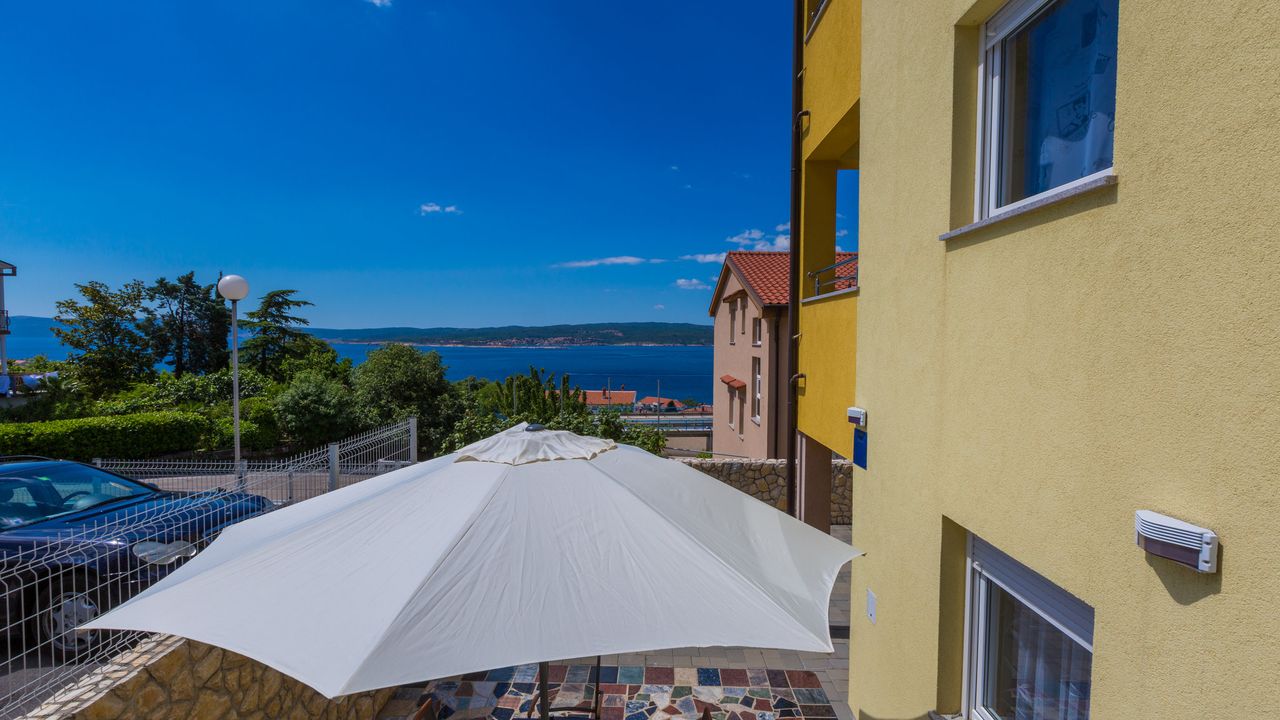 2017 NEU eingerichtete Ferienwohnung, oberhalb des Stadtzentrums und des Sandstrandes von Crikvenica. Das Haus in der sich diese Wohnung befindet ist ein neubau Haus. Ein Weg verl and auml;uft direkt vom Haus, unter der K and uuml;stenstra and szlig;e bis zum Sandstrand.Diese sch and ouml;ne Wohnung besteht aus einem Wohn/Esszimmer mit K and uuml;che im selben Raum, einem Schalfzimmer, einem Badezimmer und einer and uuml;berdachten Terrasse vor dem Eingangsbereich. Im Wohnbereich der Ferienwohnung befindet sich eine ausziehbare Schlafcouch f and uuml;r zwei Personen. Die Terrasse teilt sich auf zwei, wobwei beide zur alleinigen Nutzung f and uuml;r G and auml;ste dieser Wohnung stehen.