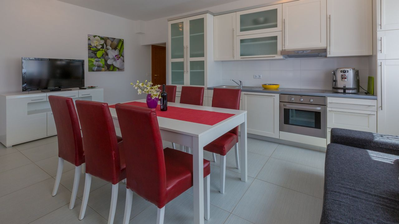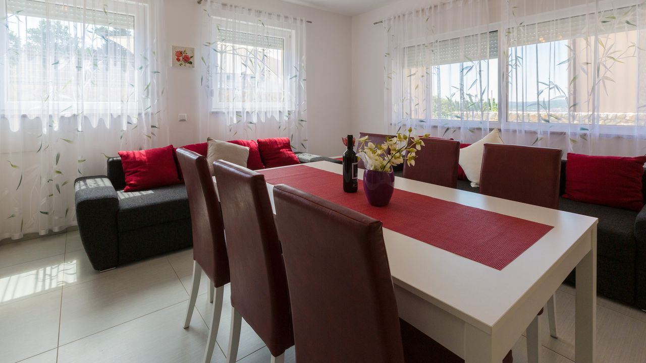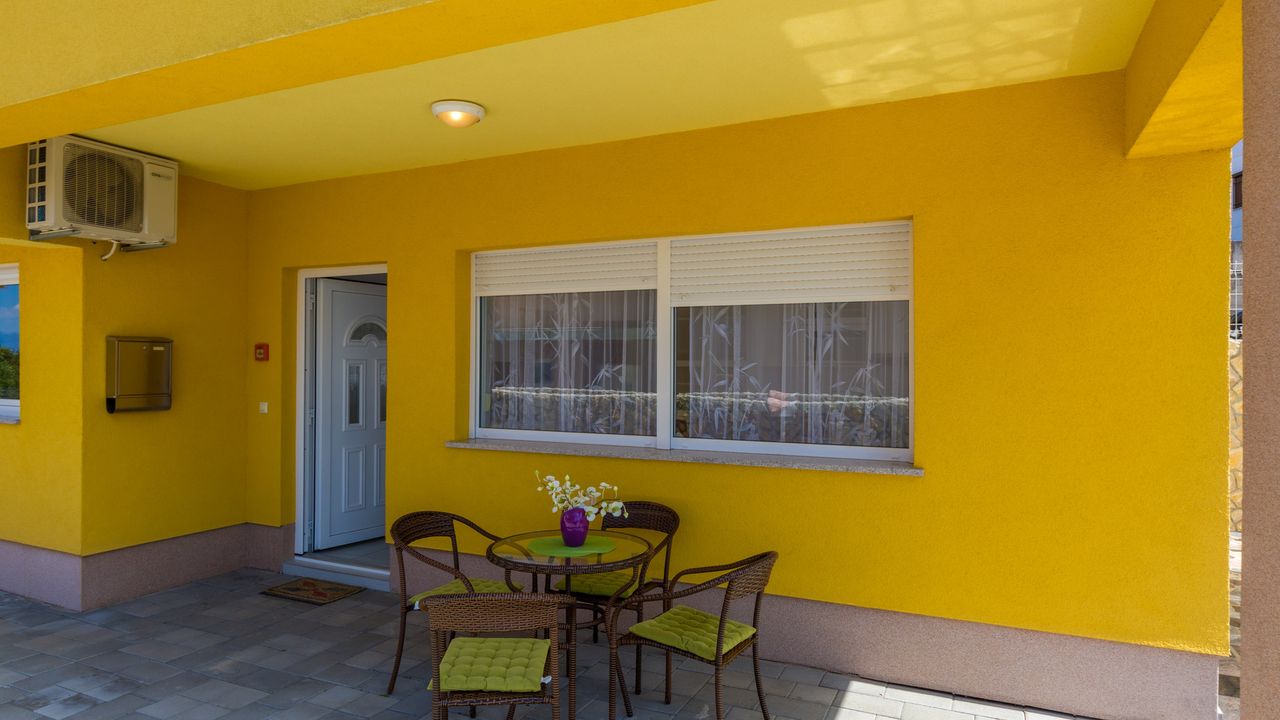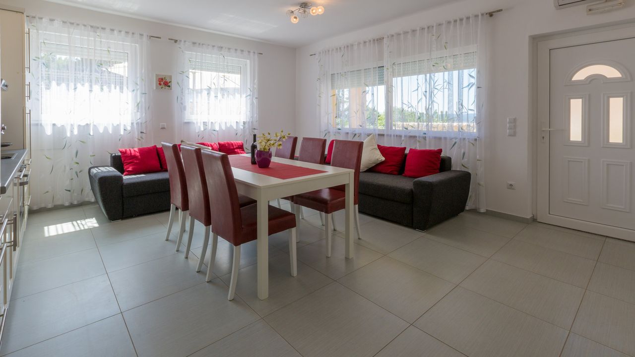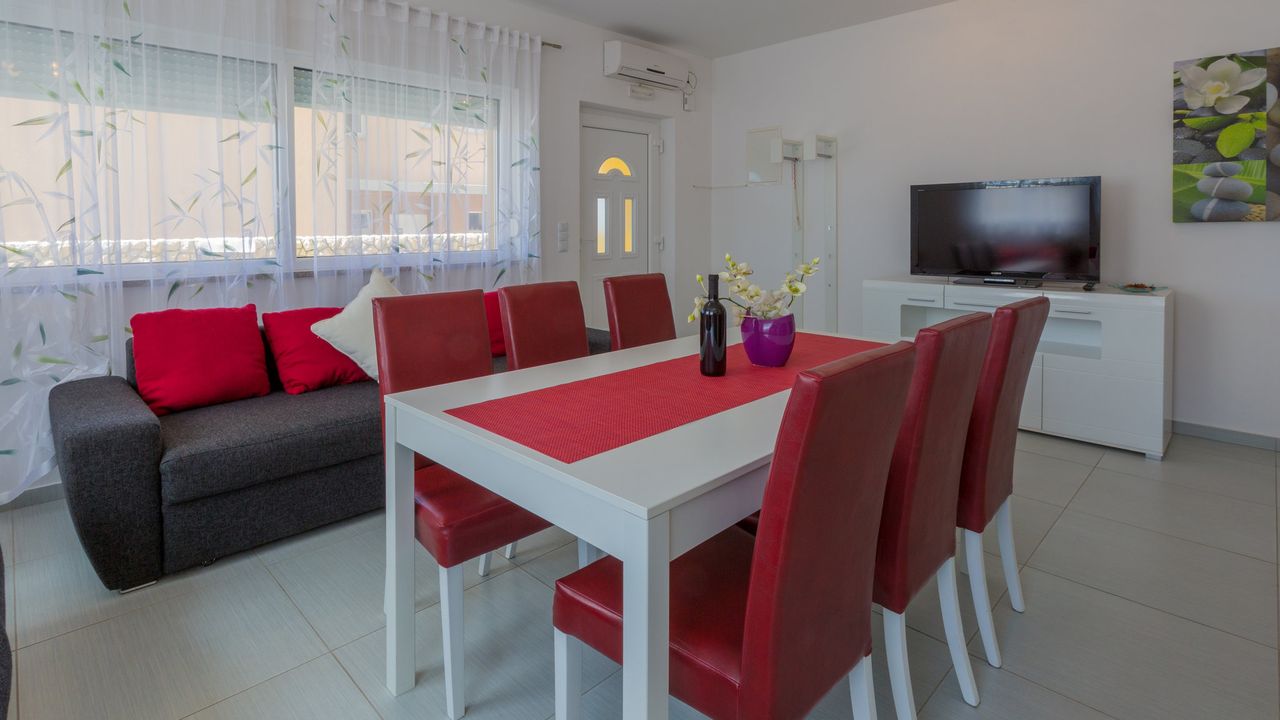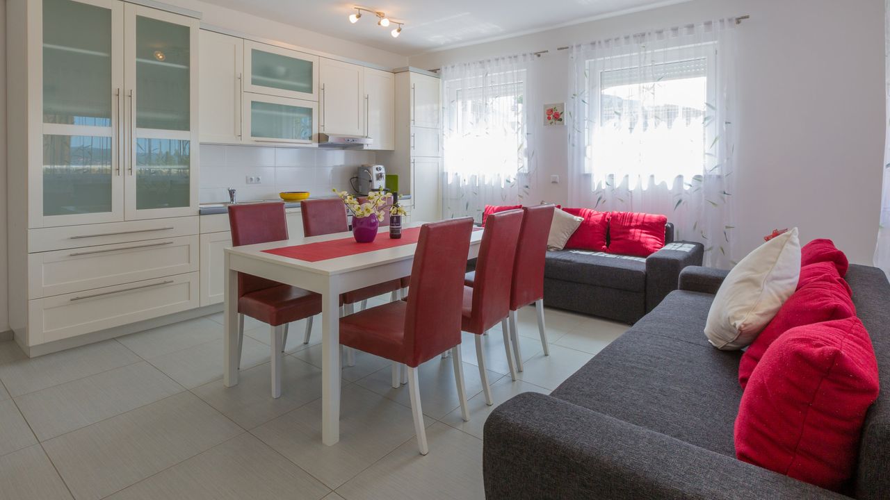 2017 NEU eingerichtete Ferienwohnung, oberhalb des Stadtzentrums und des Sandstrandes von Crikvenica. Das Haus in der sich diese Wohnung befindet ist ein neubau Haus. Ein Weg verl and auml;uft direkt vom Haus, unter der K and uuml;stenstra and szlig;e bis zum Sandstrand.Diese sch and ouml;ne Wohnung besteht aus einem Wohn/Esszimmer mit K and uuml;che im selben Raum, einem Schalfzimmer, einem Badezimmer und einer and uuml;berdachten Terrasse vor dem Eingangsbereich. Im Wohnbereich der Ferienwohnung befindet sich eine ausziehbare Schlafcouch f and uuml;r zwei Personen. Die Terrasse teilt sich auf zwei, wobwei beide zur alleinigen Nutzung f and uuml;r G and auml;ste dieser Wohnung stehen.