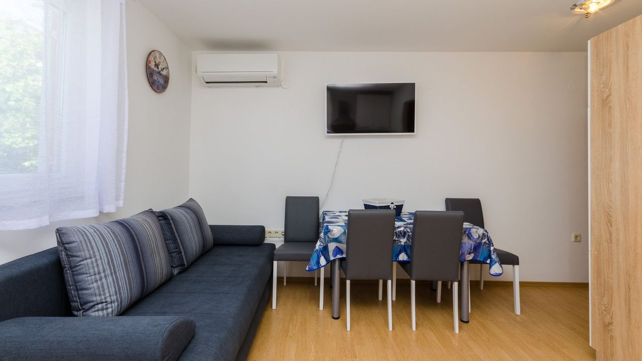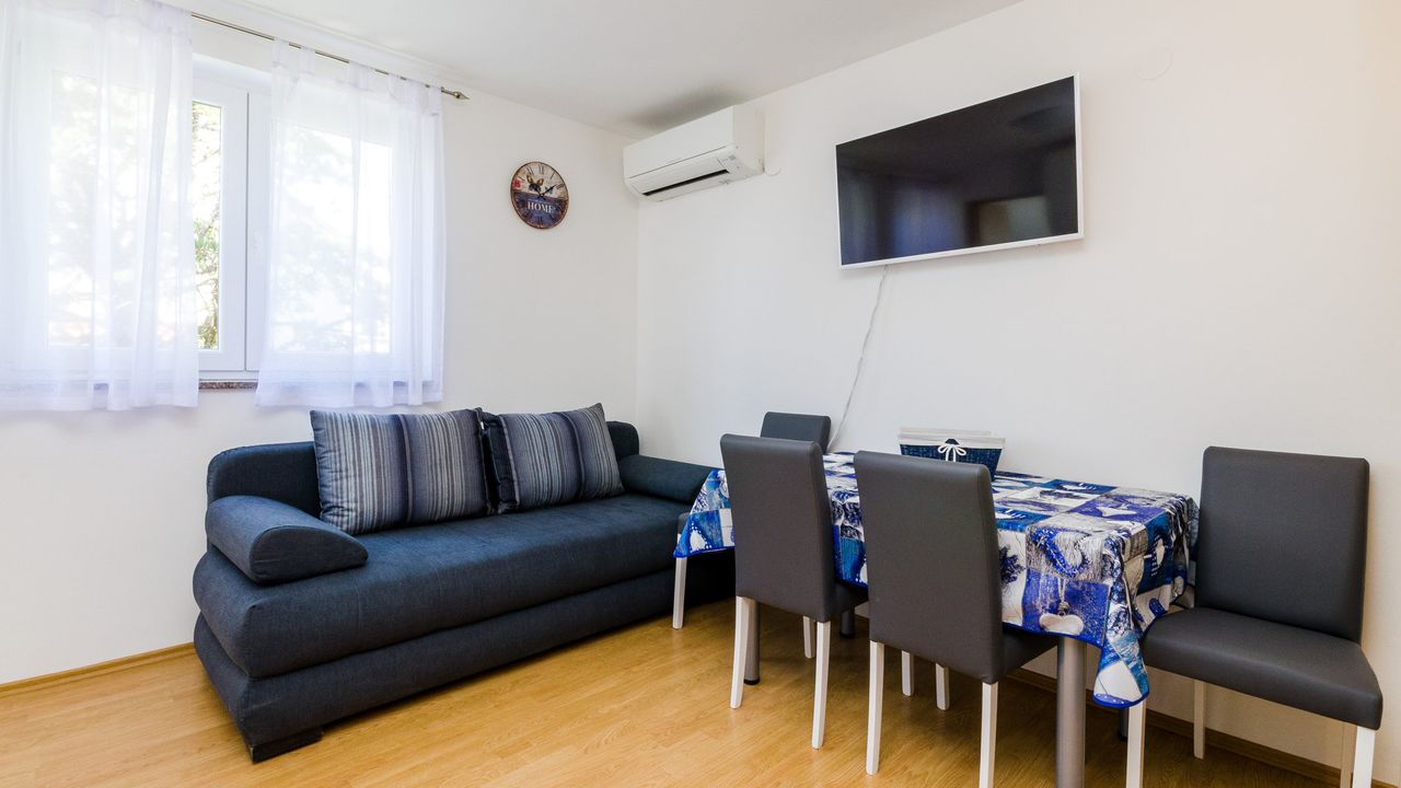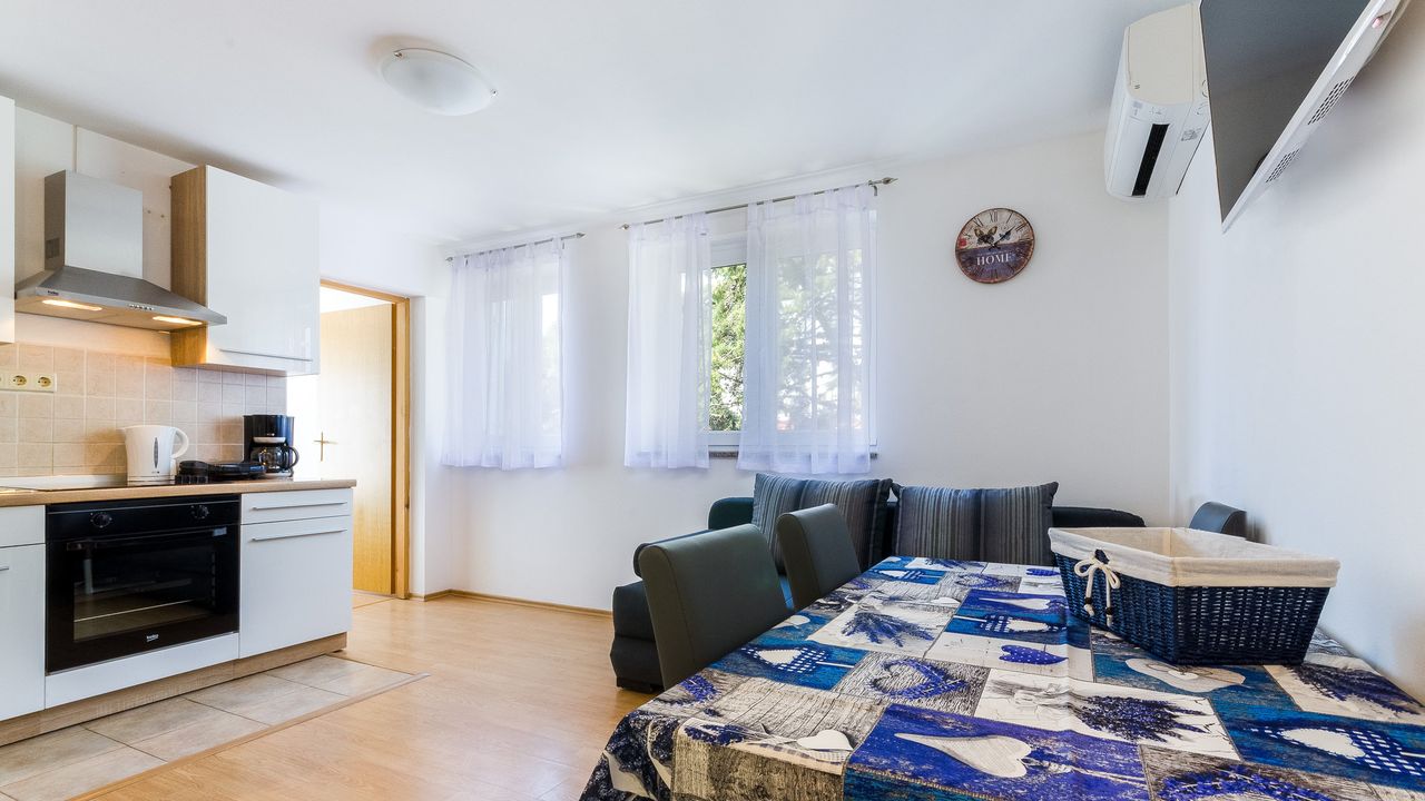 Im beliebten Stadtteil and quot;Crni Mul and quot; in Crikvenica, nur 130 Meter vom Sandstrand entfernt, liegt dieses einladende Urlaubshaus, das sich perfekt f and uuml;r einen erholsamen Aufenthalt eignet. Das Haus beherbergt vier gem and uuml;tliche Apartments, die f and uuml;r G and auml;ste bereitstehen, und bietet eine ideale Kombination aus Komfort und einer hervorragenden Lage.Die Apartments sind gut ausgestattet und verf and uuml;gen and uuml;ber Klimaanlage, WLAN, sowie bereitgestellte Bettw and auml;sche und Handt and uuml;cher, um den G and auml;sten einen sorgenfreien Aufenthalt zu erm and ouml;glichen. Ein privater Parkplatz auf dem Grundst and uuml;ck sorgt f and uuml;r zus and auml;tzlichen Komfort. Haustiere sind in der Unterkunft nicht erlaubt, ebenso wie das Grillen, um die Ruhe der Umgebung zu bewahren.