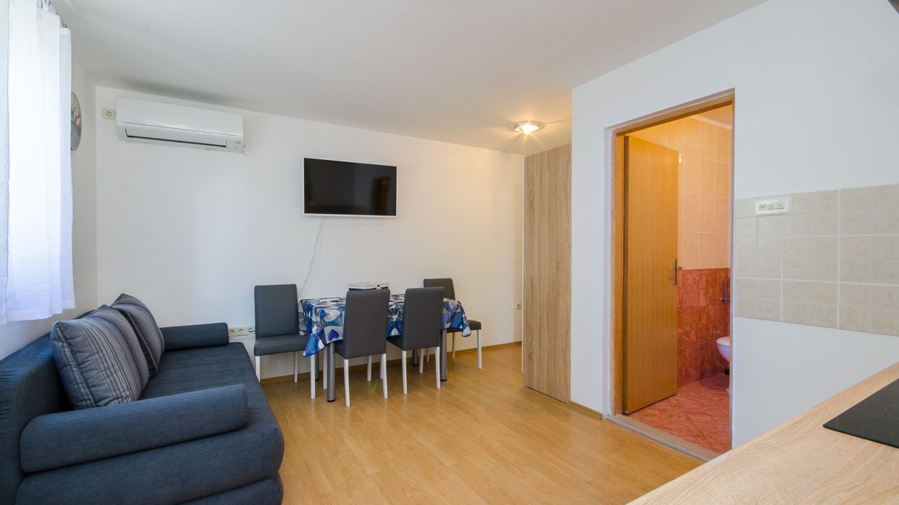 In einer beliebten Lage des Ortes Crikvenica and quot;Crni Mol and quot; liegt diese sch and ouml;ne Wohnung. Der beliebte Sandstrand ist nur 3 bis 4 Gehminuten vom Haus entfernt. B and auml;ckerei, Lebensmittelgesch and auml;ft, Restaurant und Caf and eacute; befinden sich ebenfalls in der N and auml;he.Die Wohnung ist f and uuml;r zwei bis vier Personen geeignet und besteht aus einem Wohn/Esszimmer mit einer K and uuml;che, einem Schlafzimmer, einem Badezimmer und einem sch and ouml;nem Balkon. Zum Balkon der Ferienwohnung kommt man aus dem Schlafzimmer.