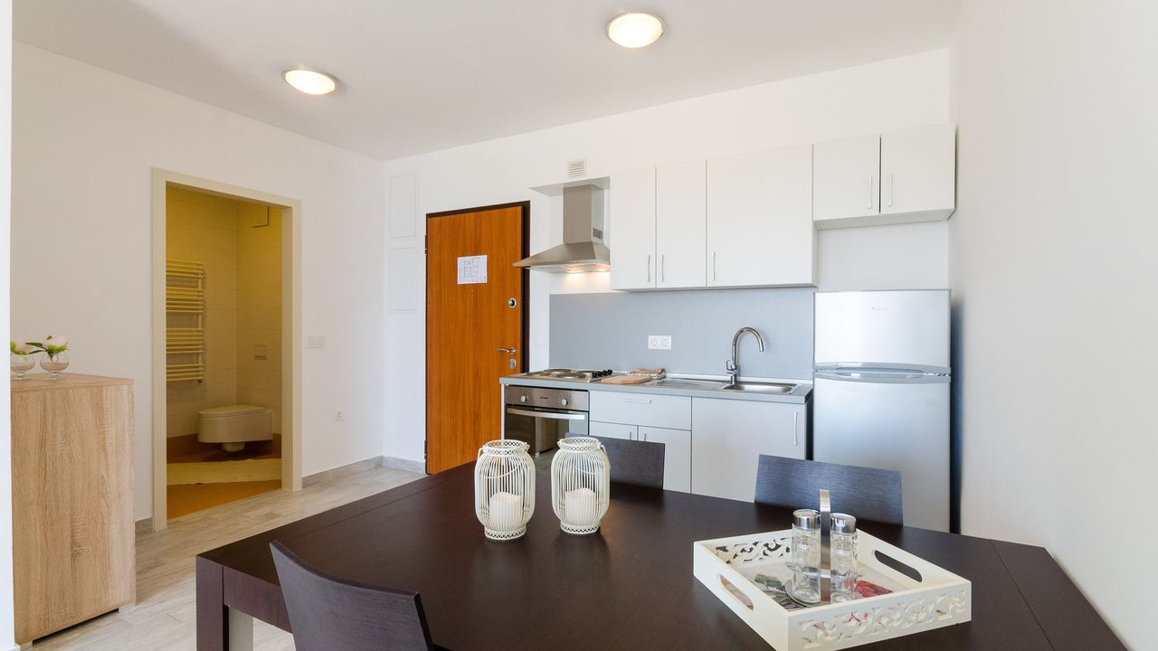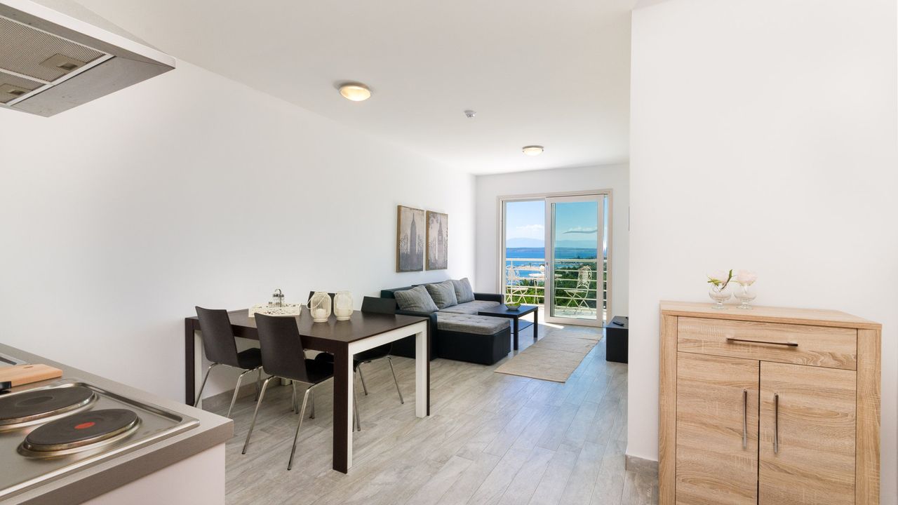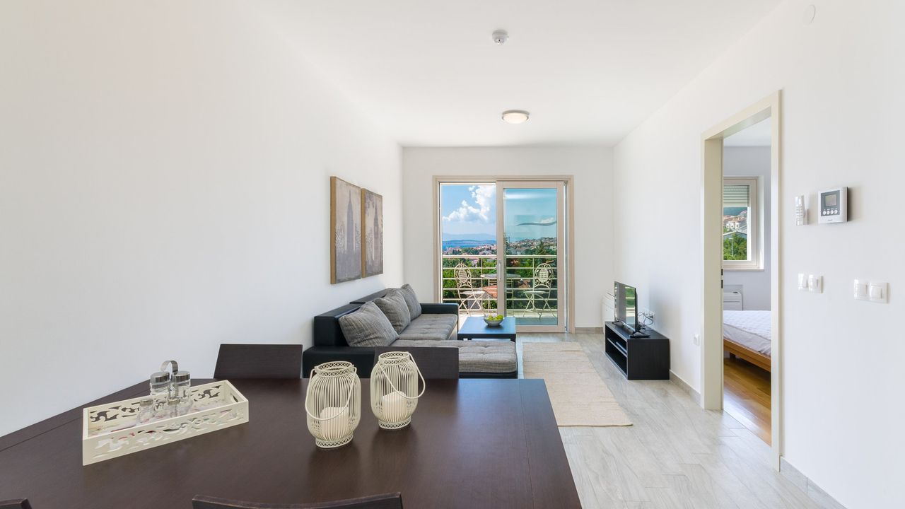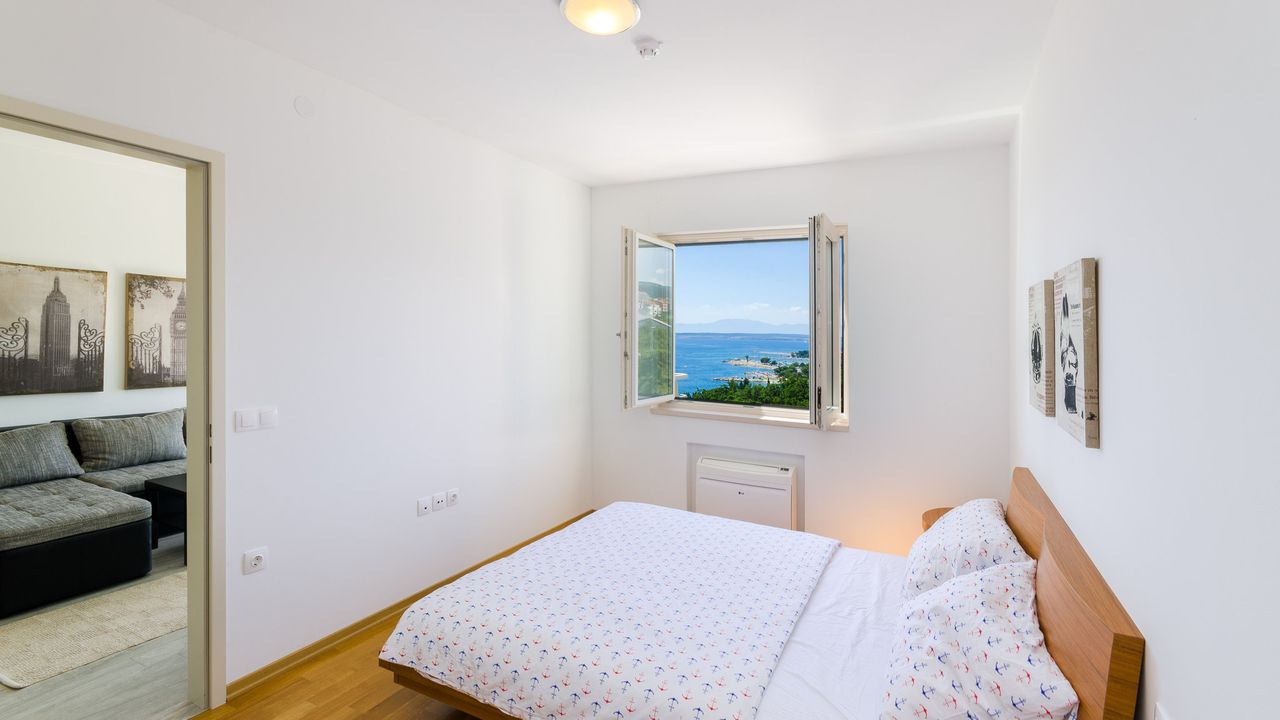 In einer sch and ouml;nen Lage, nahe dem Strand und dem Zentrum von Crikvenica befindet sich dieses moderne Ferienapartment f and uuml;r 2 bis 4 Personen.Das Apartment liegt im 3. Obergescho and szlig;, besteht aus einem Wohn/Esszimmer mit einer K and uuml;che im selben Raum, einem gem and uuml;tlichen Schlafzimmer, einem Badezimmer und einem eigenen Balkon mit Blick aufs nahe gelegene Meer. Bis zum 3. Obergesco and szlig; bef and ouml;rdert Sie ein Aufzug.
