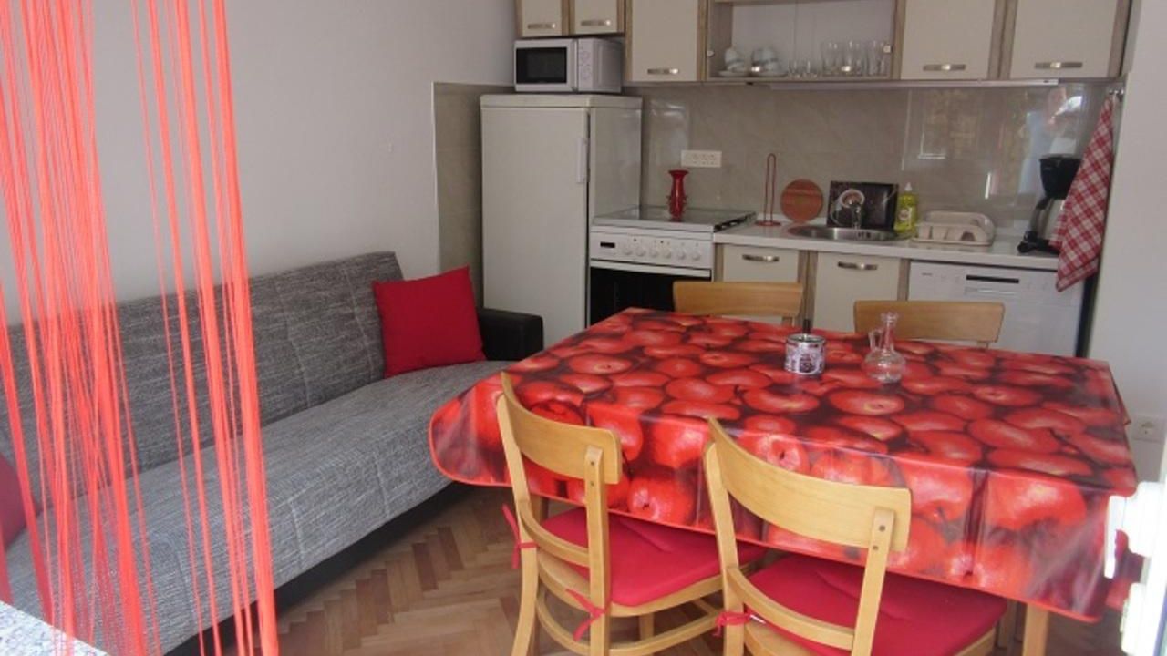 Diese sch and ouml;ne Ferienwohnung befindet sich in Novi Vinodolski, unweit vom Strand entfernt.Die Wohnung besteht aus einem Wohn/Esszimmer mit K and uuml;che im selben Raum, einem separatem Schlafzimmer, einem Badezimmer und einer sch and ouml;nen schattigen Terrasse.