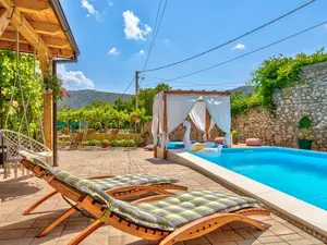 Traumhaftes Ferienhaus mit eigenem SwimmingpoolIn einer ruhigen Umgebung, reich an Natur befindet sich dieses 2018. NEU renovierte Ferienhaus, welches f and uuml;r bis zu 6 Personen geeignet ist und and uuml;ber einen eigenen Swimmingpool verf and uuml;gt.