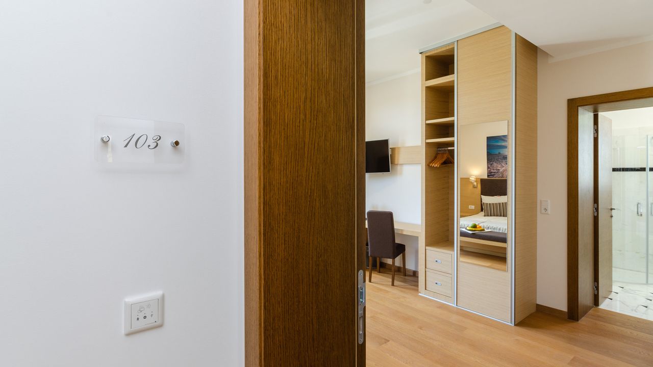 Jedes Zimmer ist mit hochwertigen M and ouml;beln wie z.B. Doppelbett, Kleiderschrank und Schreibtisch ausgestattet. Das Badezimmer verf and uuml;gt and uuml;ber eine Dusche, Waschbecken, Toilette, Bide und ein F and ouml;n.