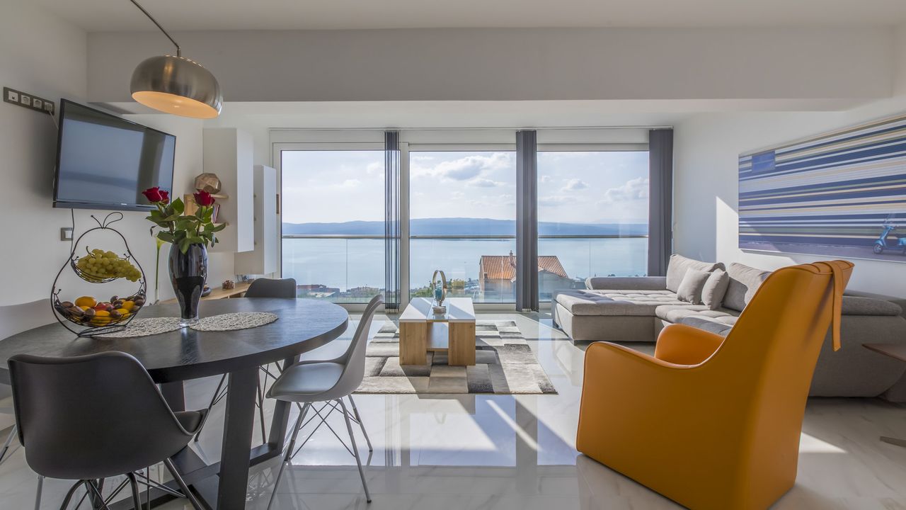 Dieses luxuri and ouml;se 5-Sterne-Apartment liegt in einem modernen Wohnviertel oberhalb des Ortszentrums von Crikvenica und bietet Platz f and uuml;r bis zu zwei Erwachsene sowie zwei Kinder auf Anfrage. Die geschmackvolle und hochwertige Einrichtung des Apartments garantiert h and ouml;chsten Komfort und ein stilvolles Ambiente.