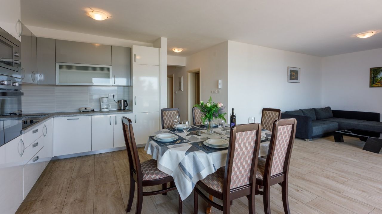 Beide Apartments sind modern eingerichtet, mit einem Fokus auf Funktionalit and auml;t und Stil. Sie sind mit allen wichtigen Ger and auml;ten und Zubeh and ouml;r ausgestattet, die f and uuml;r einen langen und erholsamen Aufenthalt erforderlich sind. Die gro and szlig;z and uuml;gigen Balkone mit herrlichem Blick auf die Adria sind ideale Orte, um sich bei einer morgendlichen Tasse Kaffee zu entspannen oder die Abendsonne zu genie and szlig;en.