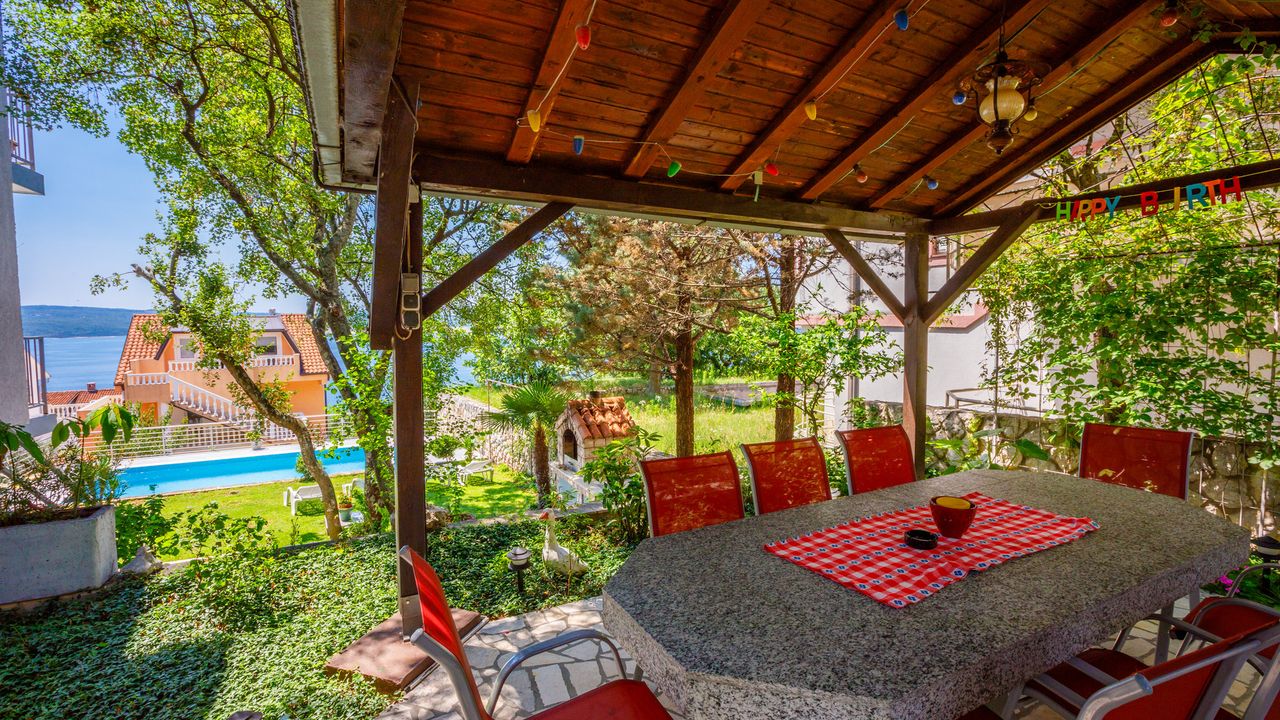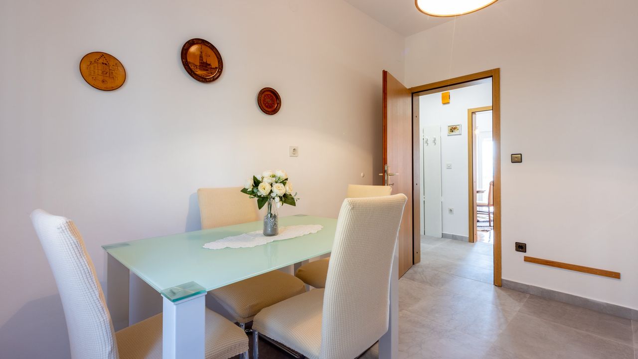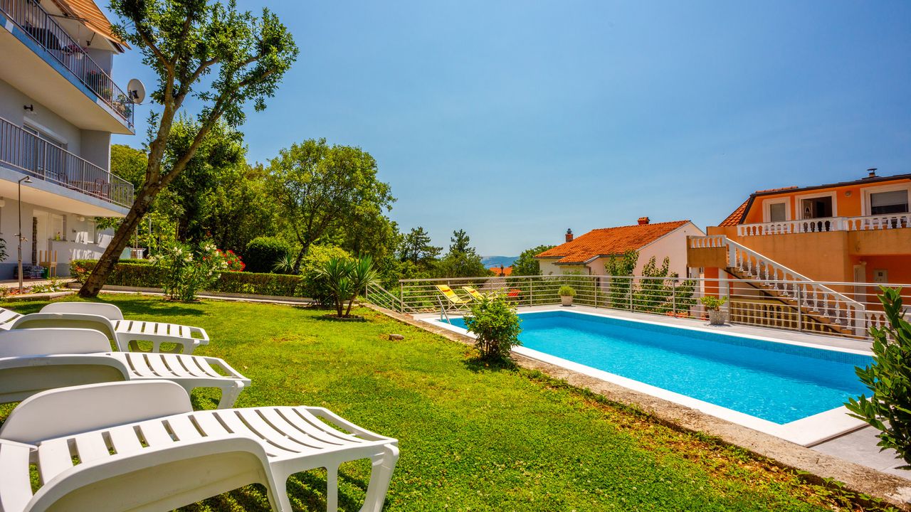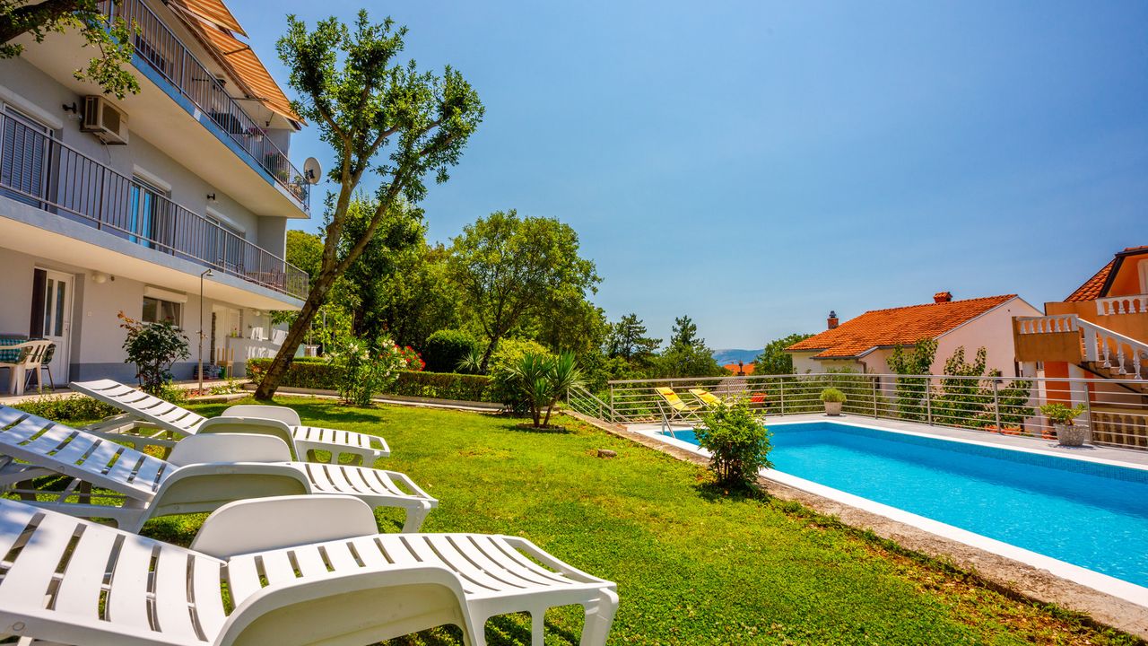 Nicht weit vom Meer und den ruhigen Buchten der Halbinsel Kačjak entfernt, erwartet Sie diese wundersch and ouml;ne Ferienwohnung, die f and uuml;r bis zu sechs Personen geeignet ist und zudem mit einem Swimmingpool ausgestattet ist. Die Wohnung verf and uuml;gt and uuml;ber ein gem and uuml;tliches Wohn- und Esszimmer mit Meerblick und Zugang zum Balkon, zwei Schlafzimmer, ein Badezimmer sowie einen Flur. and nbsp;Ein weiteres Highlight ist der eigene Balkon sowie eine gro and szlig;z and uuml;gige Terrasse, die sich im Garten befindet und mit einem Grill ausgestattet ist and ndash; perfekt f and uuml;r gesellige Abende im Freien. Im Au and szlig;enbereich k and ouml;nnen Sie auf einer and uuml;berdachten Terrasse mit einem Tisch und St and uuml;hlen f and uuml;r sechs Personen entspannen, w and auml;hrend Sie den sch and ouml;nen Blick und die Ruhe genie and szlig;en. Der 32 m and sup2; gro and szlig;e Swimmingpool bietet Erfrischung an warmen Tagen, und rund um den Pool stehen Ihnen sechs Sonnenliegen sowie eine Liegewiese zur Verf and uuml;gung, um in der Sonne zu entspannen. and nbsp;