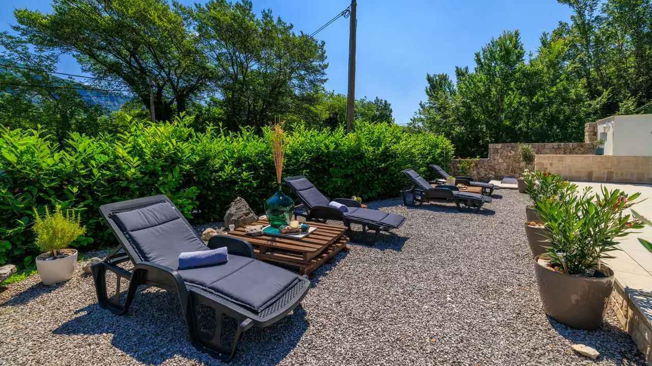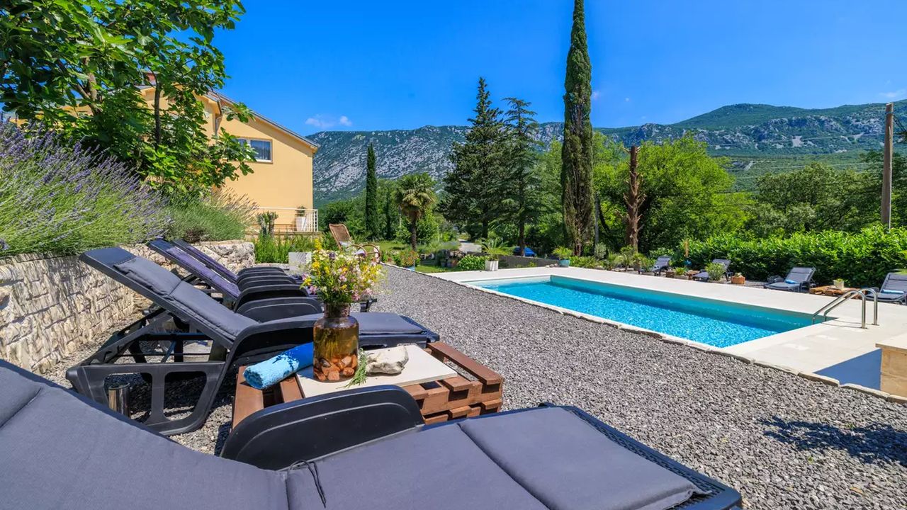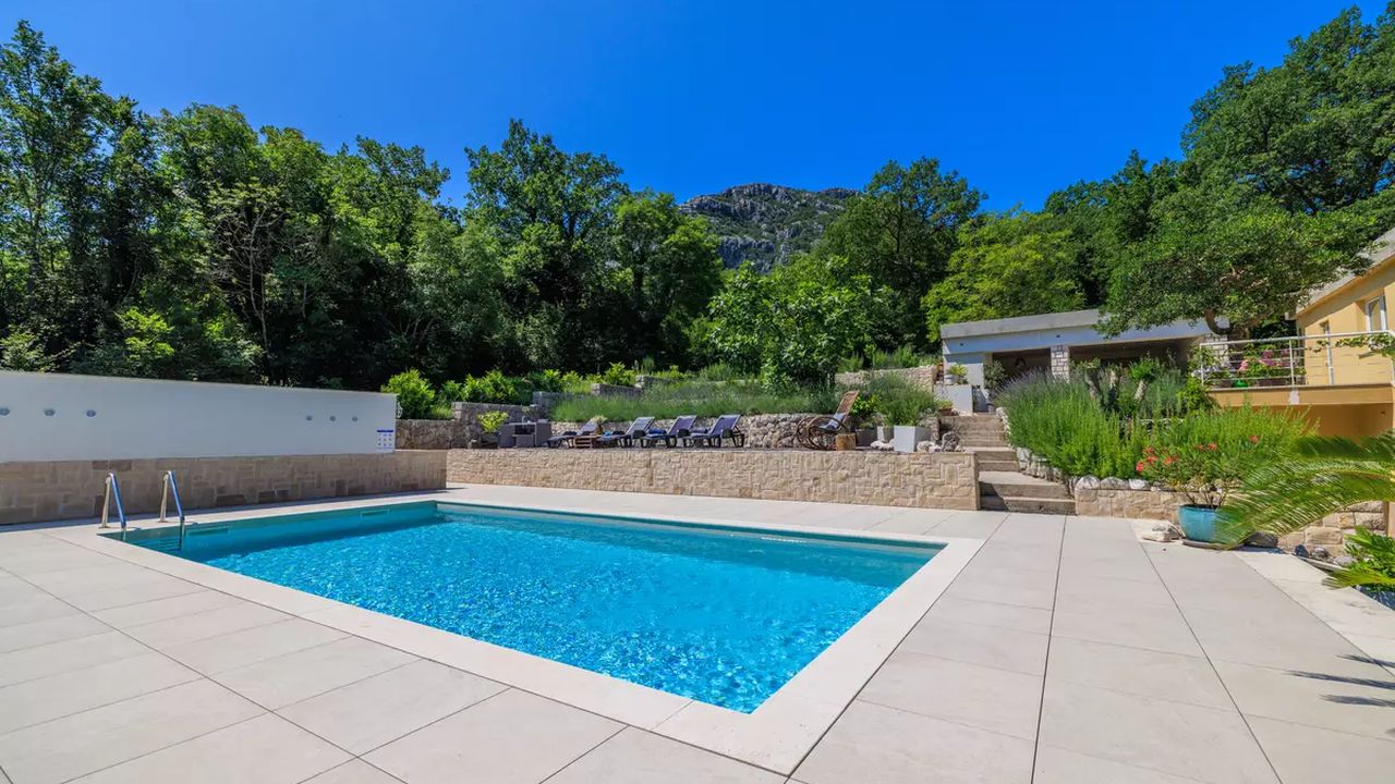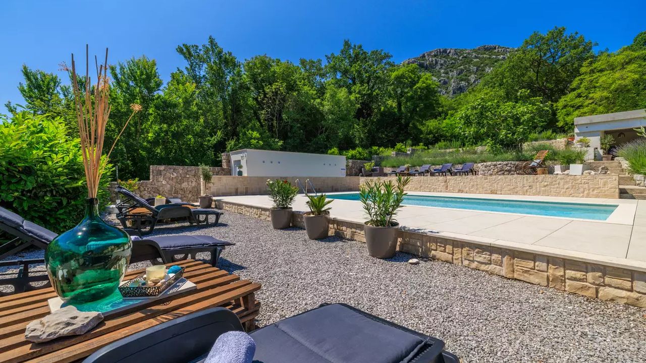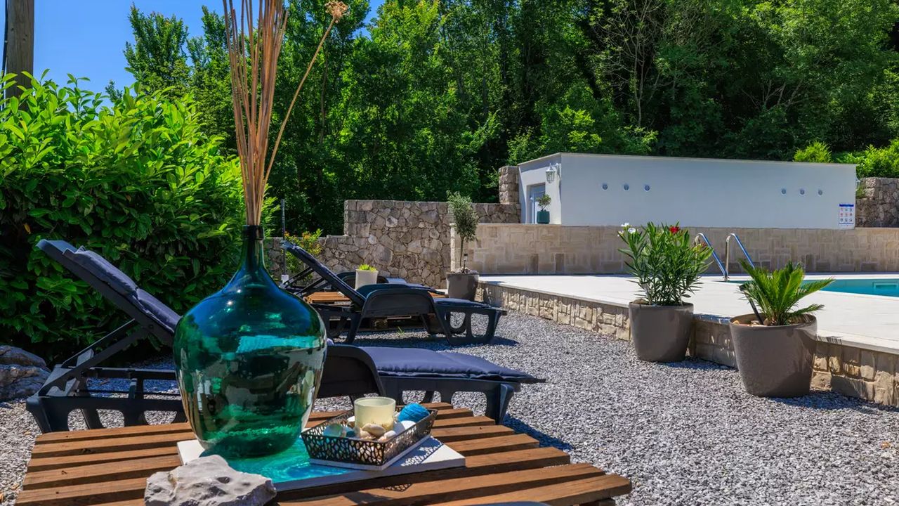 Hier steht ein 36 m and sup2; gro and szlig;e Swimmingpool zur Verf and uuml;gung. Der Poolbereich ist mit 8 Sonnenliegen, einem Sonnenschirm, und vielen mediteranen Gew and auml;chsen ausgestattet.