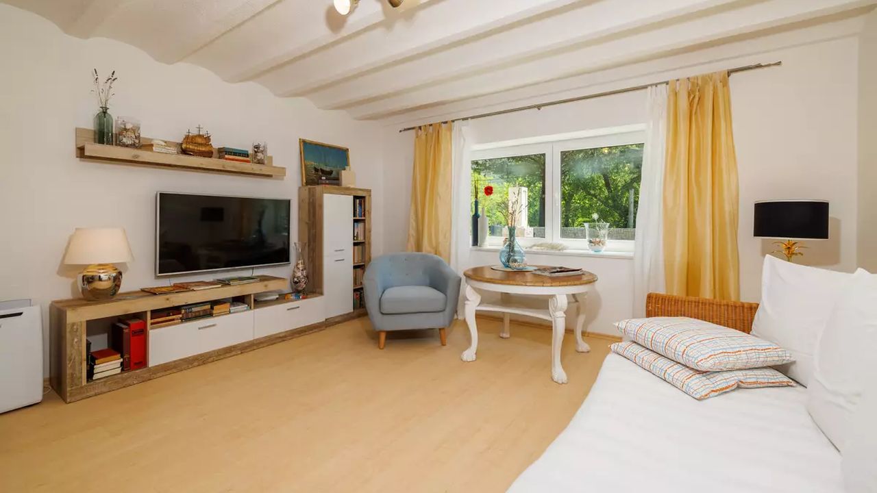 Die 6. Schlafm and ouml;glichkeit befindet sich auf der Schlafcouch im Wohnzimmer.