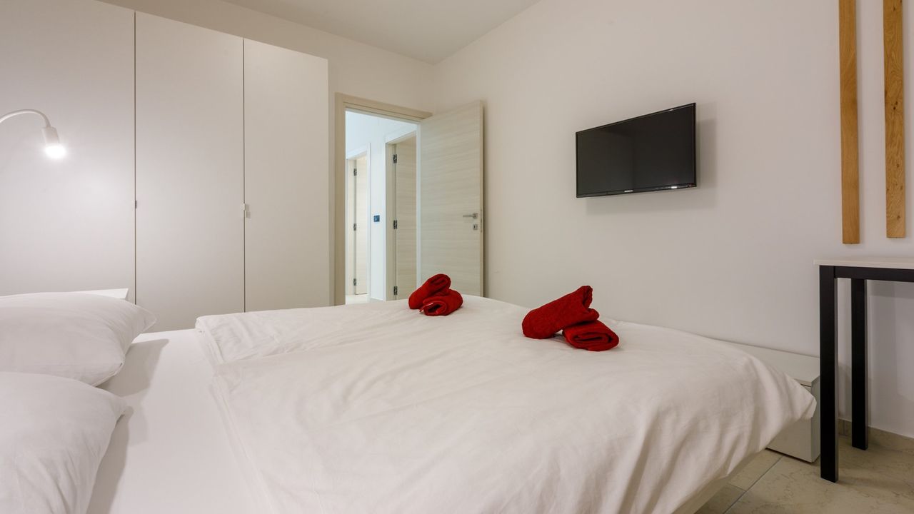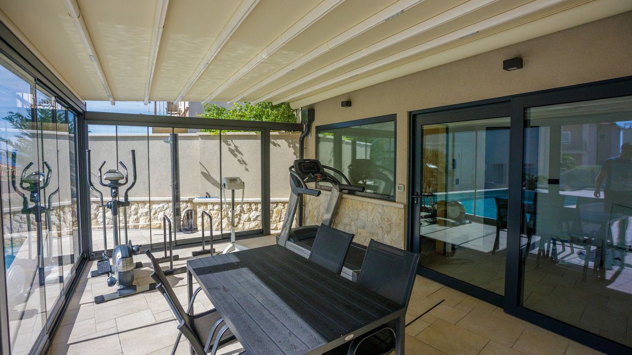 Diese Wohnung besteht aus einem ger and auml;umigen Wohn/Esszimmer mit einer gut ausgestatteten K and uuml;che, einem Schlafzimmer mit einem Doppelbett, einem Schlafzimmer mit zwei getrennten Einzelbetten, einem modernen Badezimmer und einer separaten Toilette mit Waschbecken. Im Wohnzimmer befindet sich eine ausziehbare Schlafcouch welche f and uuml;r bis zu 2 Kinder vorgesehen ist.Hinter dem Haus befindet sich ein traumhafter Poolbereich mit einem 32 m and sup2; gro and szlig;en und 1,6 m tiefen Swimmingpool. Gleich daneben steht eine Sauna, einige Sportger and auml;te und eine Bar zur Verf and uuml;gung.