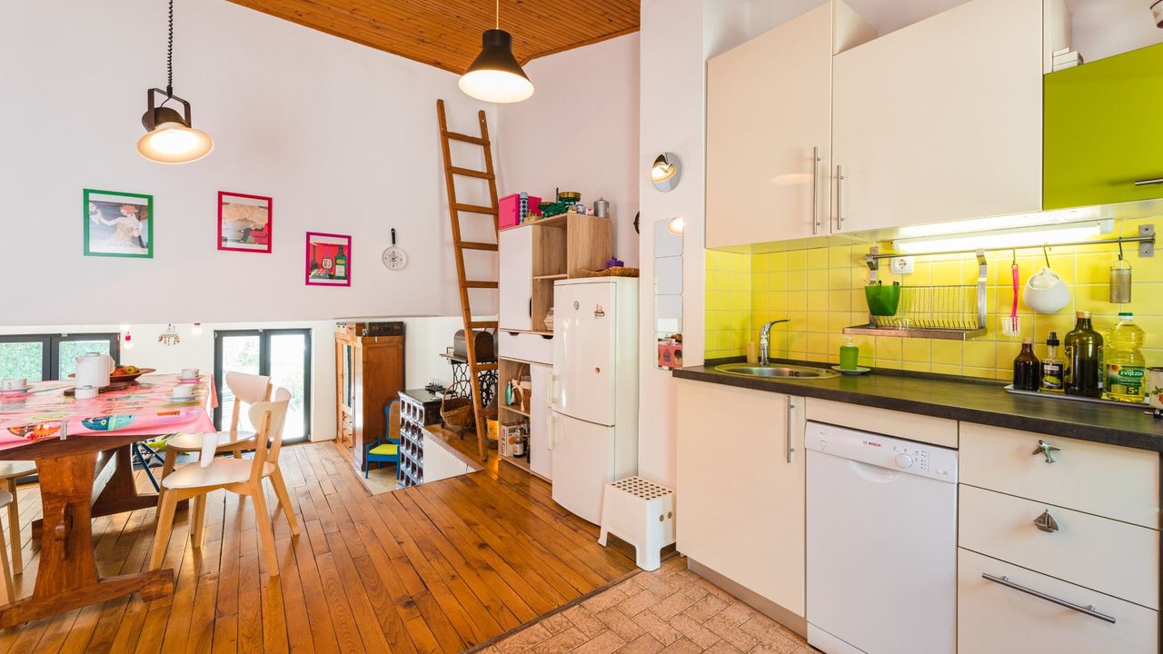 Esszimmer und K and uuml;che sind ein Raum