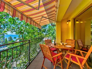 eigener Balkon, teilweise and uuml;berdacht mit Meerblick, Bestuhlung, Balkongr and ouml; and szlig;e: 15 m and sup2;