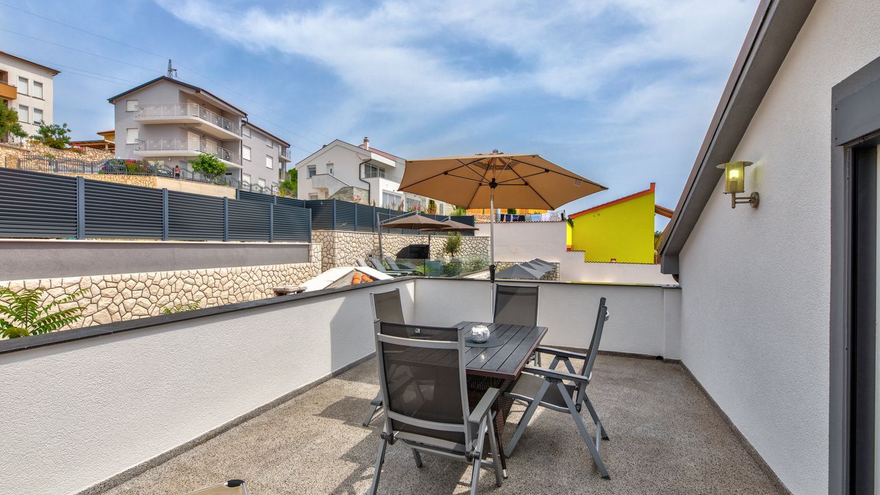 In einer ruhigen Gegend oberhalb des Zentrums von Crikvenica, weit weg vom Stadttrubel, befindet sich dieses wundersch and ouml;n renovierte Haus mit f and uuml;nf modern eingerichteten Apartments, ideal f and uuml;r einen erholsamen Urlaub. Das Haus wurde 2021 komplett renoviert und bietet die perfekte Mischung aus Komfort, modernem Design und mediterranem Charme.Jedes Apartment ist so konzipiert, dass es den G and auml;sten maximalen Komfort bietet: