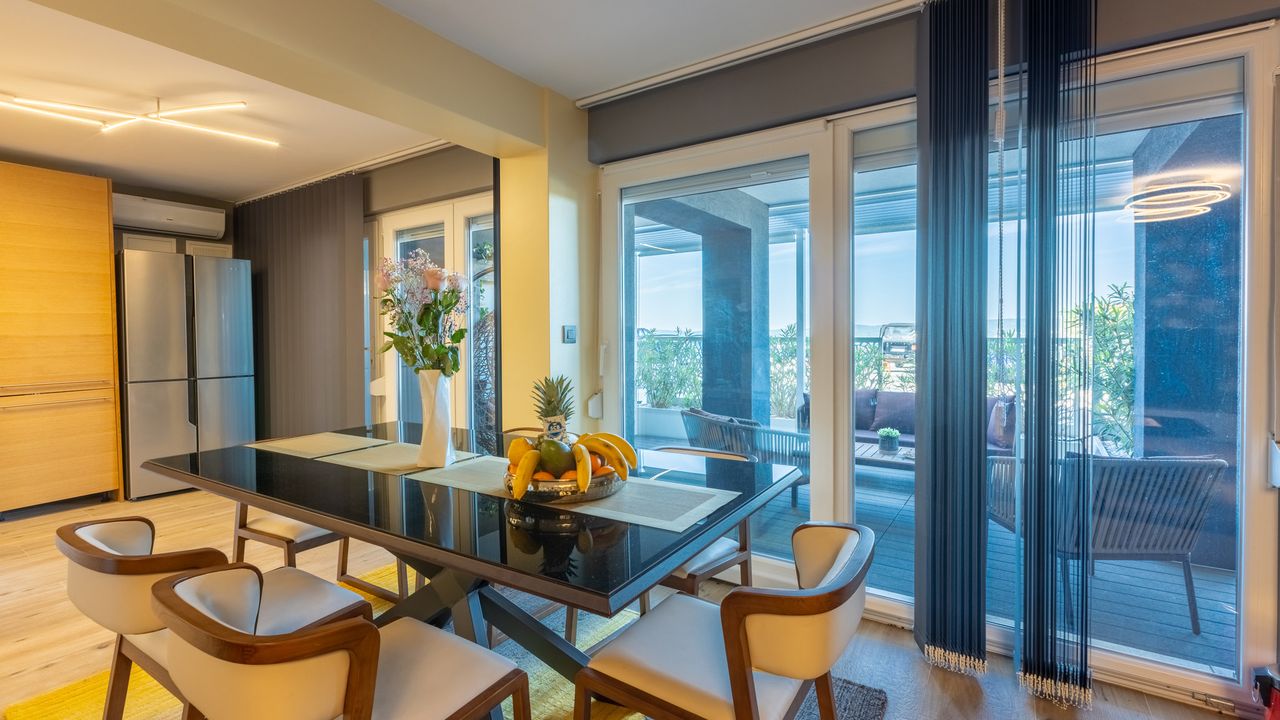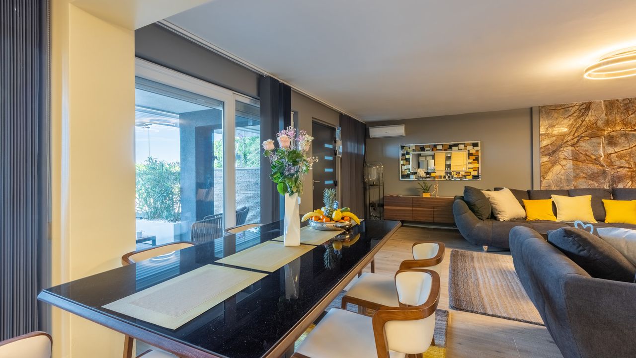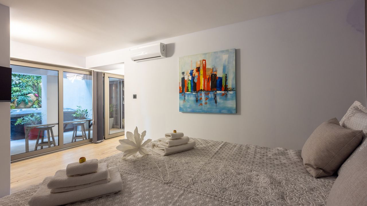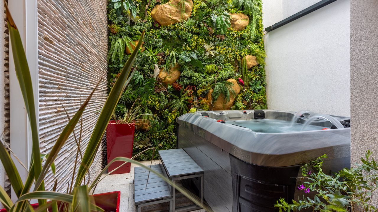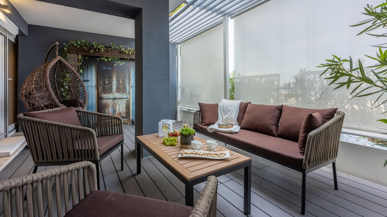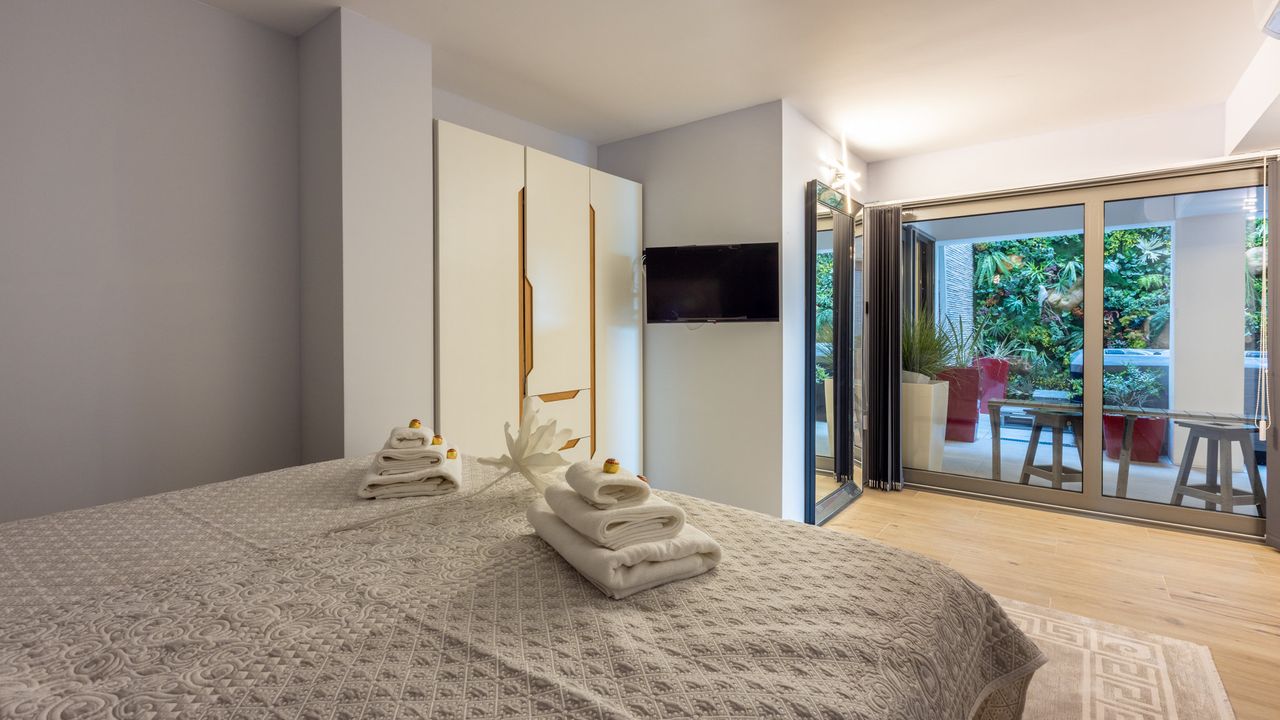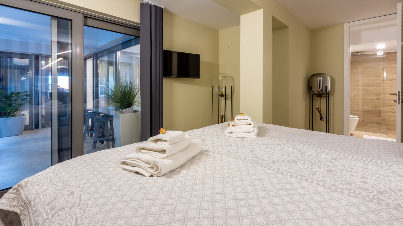 Die Terrasse dieses Apartments ist sehr bequem und stylisch eingerichtet mit Tisch und Lounge Sessel f and uuml;r vier bis 6 Personen. Ausser der steht im Atrij ein eigener Gasgrill und ein eigener Whirlpool zur Verf and uuml;gung, welcher f and uuml;r bis zu vier Personen geeignet ist. Das Atrij ist von beiden Schlafzimmer zug and auml;nglich.