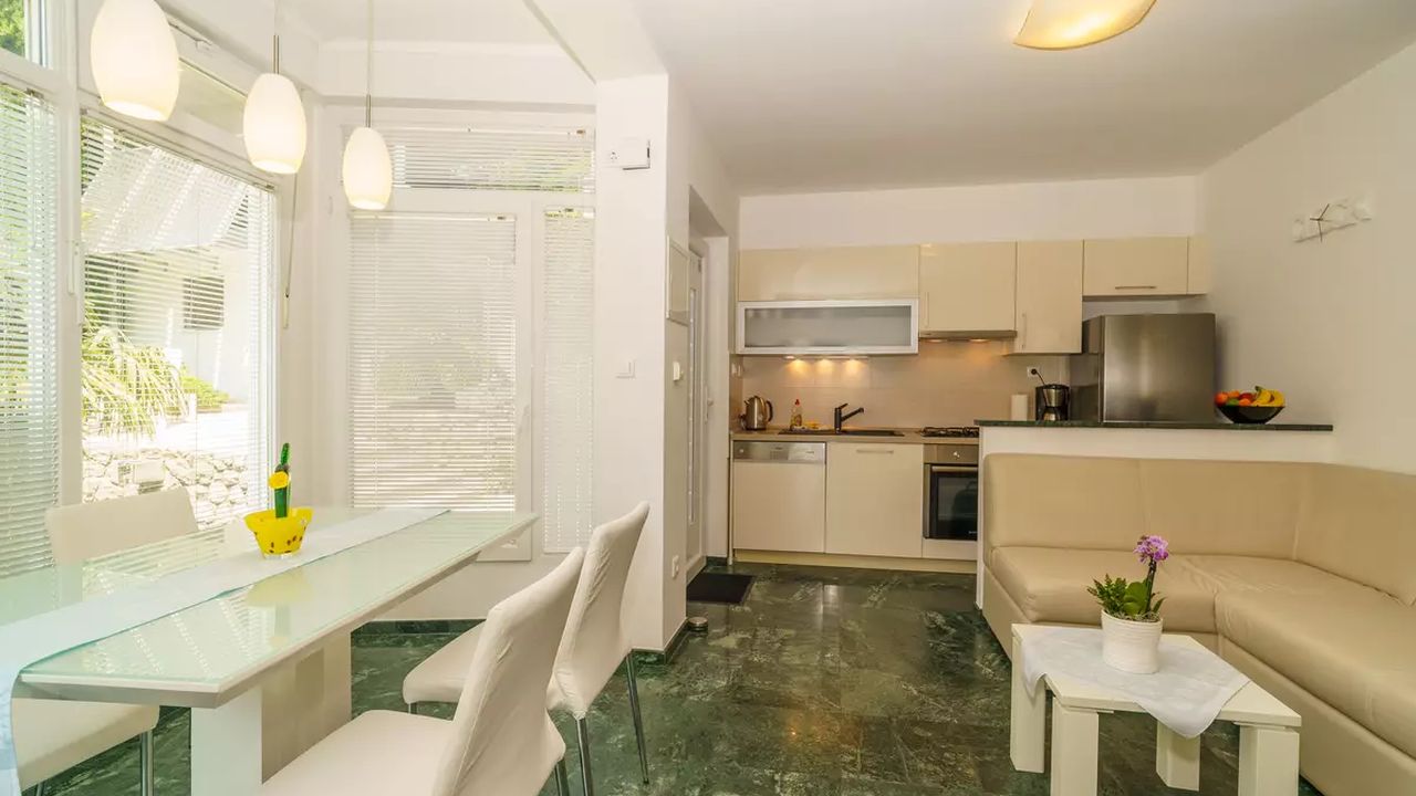 Im Herzen der Kvarner Bucht, im beliebten Urlaubsort Crikvenica, erwartet Sie dieses einladende Feriendomizil. Das Apartmenthaus umfasst insgesamt vier Ferienwohnungen und ein Studioapartment, die sich ideal f and uuml;r Paare, Familien oder kleine Reisegruppen eignen. Zwei der Wohnungen sind f and uuml;r jeweils 4 Personen ausgelegt, eine weitere bietet Platz f and uuml;r 2-4 Personen, und das Studioapartment ist die perfekte Wahl f and uuml;r ein oder zwei G and auml;ste. Alle Unterk and uuml;nfte sind klimatisiert und komfortabel ausgestattet.