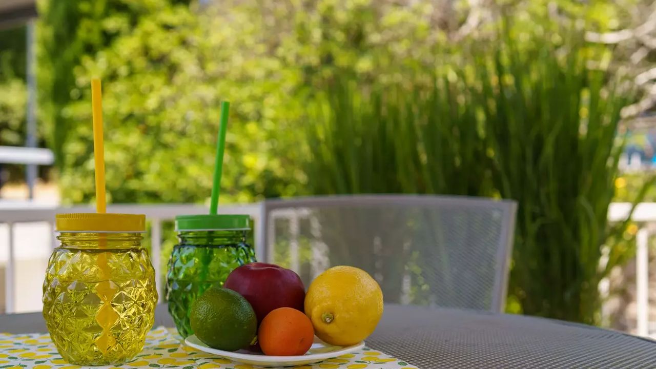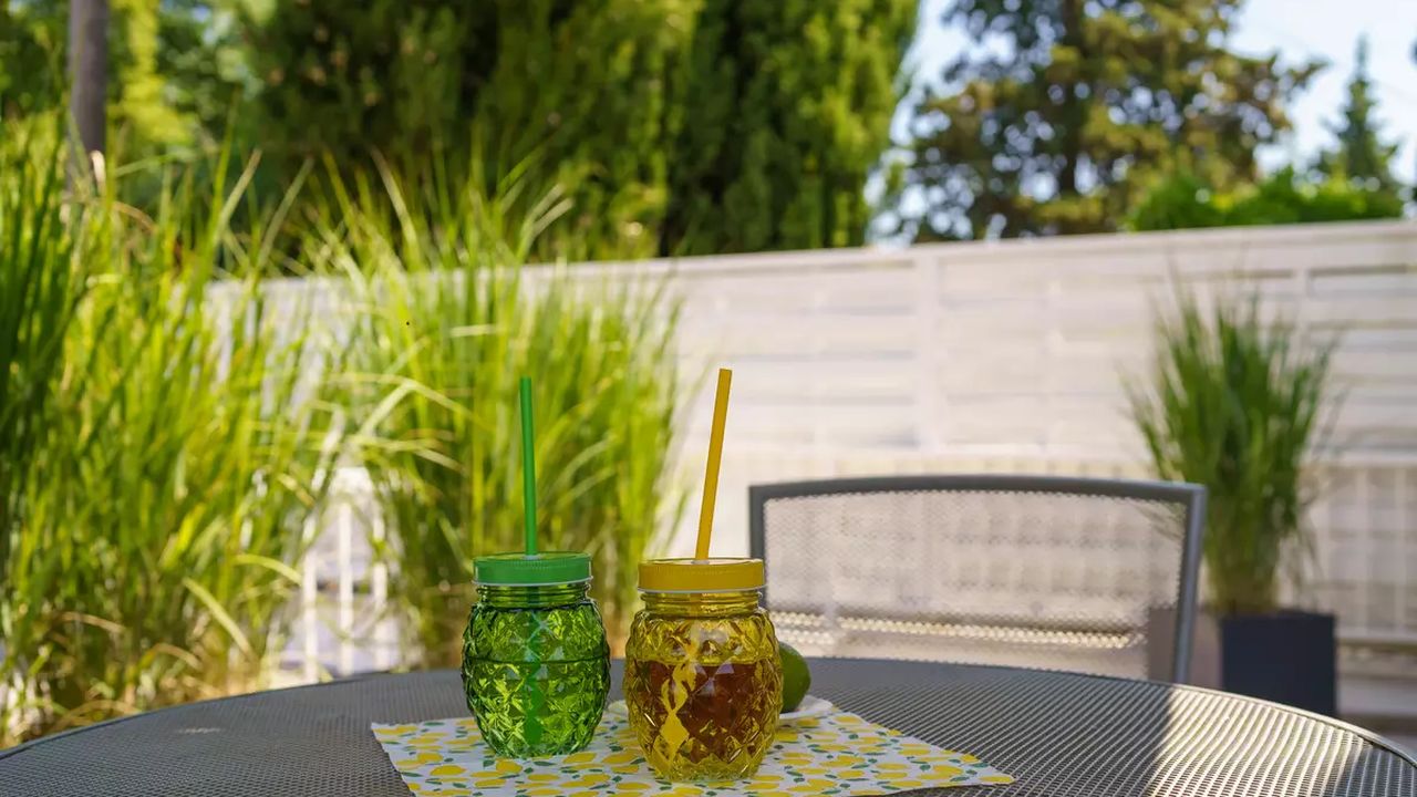 Im Aussenbereich befindet sich die m and ouml;blierte Terrasse mit einem sch and ouml;nen Meerblick.Im Garten steht den G and auml;sten ein gemeinsamer Grill und eine gemeinsame Terrasse zur Verf and uuml;gung.F and uuml;r diese Wohnung ist ein Parkplatz auf dem Grundst and uuml;ck reserviert.