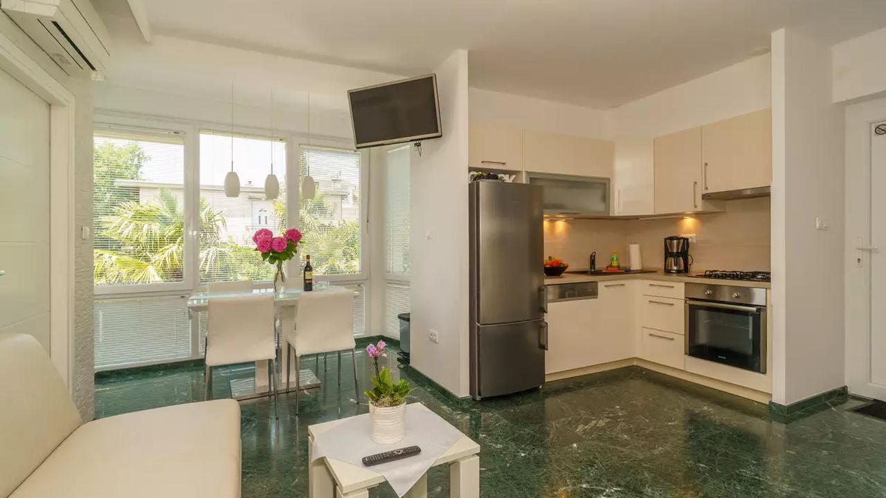 Im Herzen der Kvarner Bucht, im beliebten Urlaubsort Crikvenica, erwartet Sie dieses einladende Feriendomizil. Das Apartmenthaus umfasst insgesamt vier Ferienwohnungen und ein Studioapartment, die sich ideal f and uuml;r Paare, Familien oder kleine Reisegruppen eignen. Zwei der Wohnungen sind f and uuml;r jeweils 4 Personen ausgelegt, eine weitere bietet Platz f and uuml;r 2-4 Personen, und das Studioapartment ist die perfekte Wahl f and uuml;r ein oder zwei G and auml;ste. Alle Unterk and uuml;nfte sind klimatisiert und komfortabel ausgestattet.