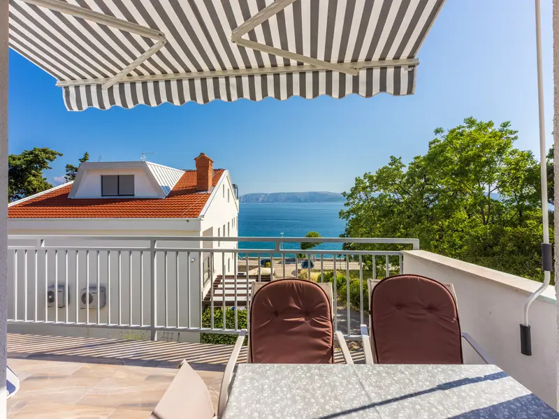 Diese sch and ouml;ne Ferienwohnung in Novi Vinodolski bietet Platz f and uuml;r 2-4 Personen und liegt nur 85 Meter vom Meer entfernt and ndash; ideal f and uuml;r einen erholsamen Urlaub. and nbsp;Die Unterkunft verf and uuml;gt and uuml;ber einen gem and uuml;tlichen Wohn- und Essbereich mit K and uuml;che, ein separates Schlafzimmer und ein Badezimmer. Vom Wohnbereich gelangen Sie auf den and uuml;berdachten und m and ouml;blierten Balkon, der Ihnen einen traumhaften Meerblick bietet. and nbsp;