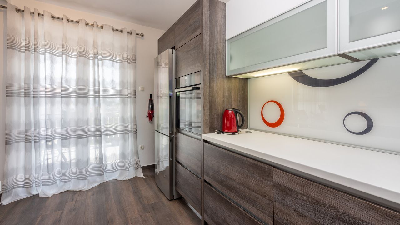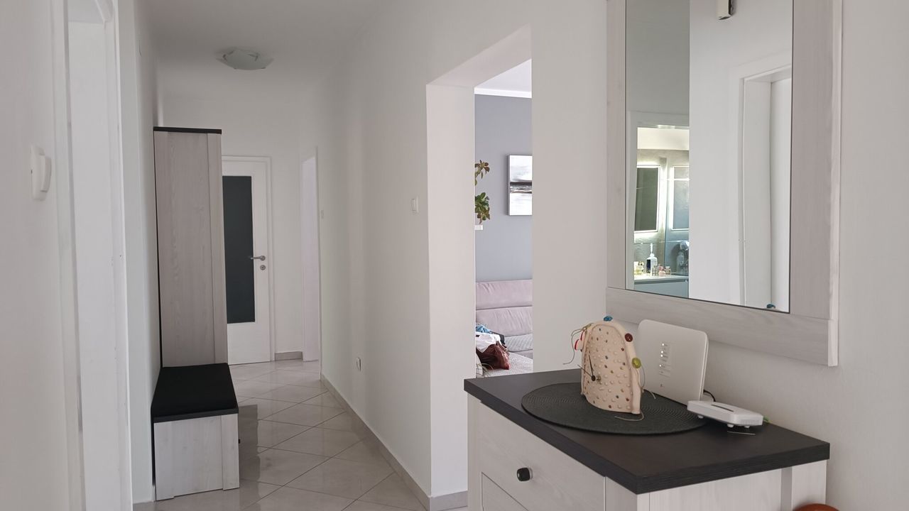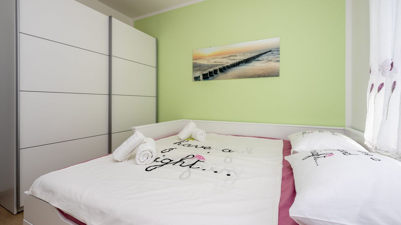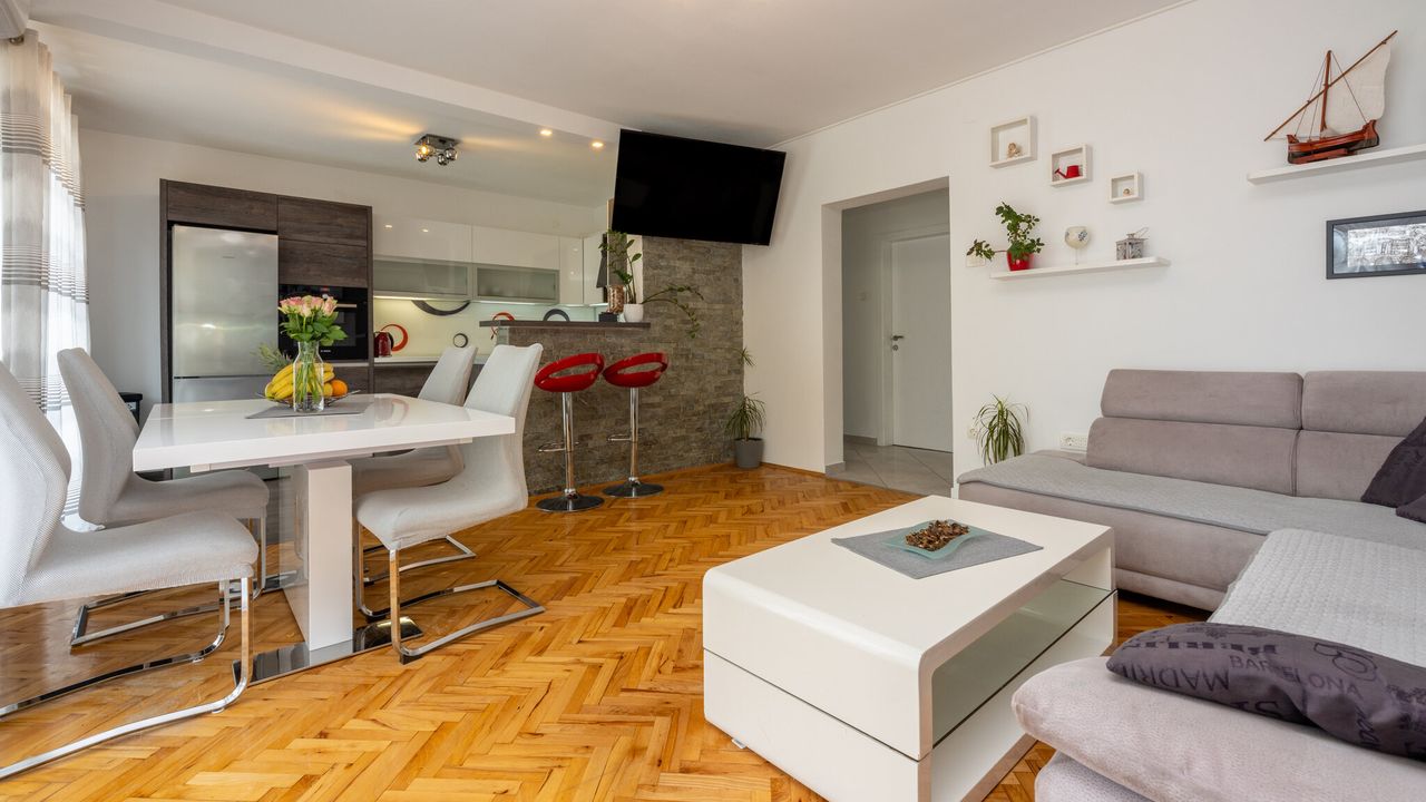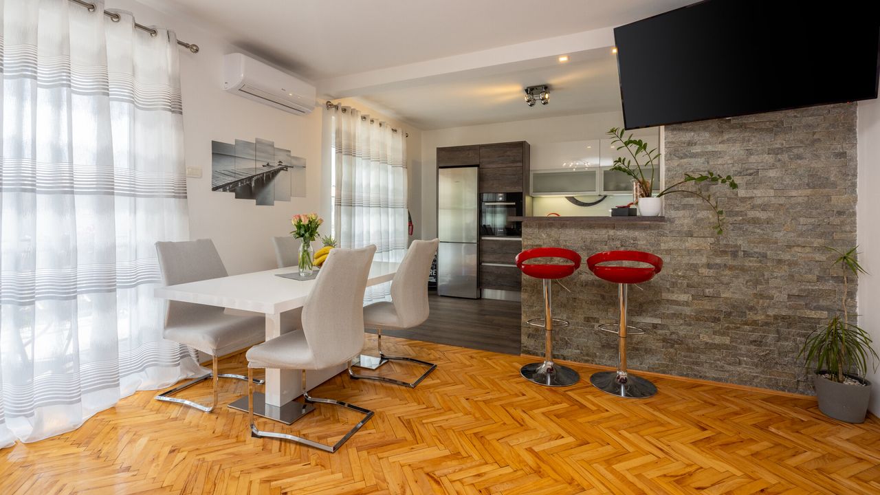 Dieses wundersch and ouml;ne und modern eingerichtete Ferienapartment, geeignet f and uuml;r 2 bis 4 Personen, befindet sich im Herzen der Kvarner Bucht, in einem der beliebtesten Urlaubsorte and ndash; Crikvenica. Dank seiner idealen Lage bietet dieses Apartment die perfekte Kombination aus ruhiger Umgebung und der N and auml;he zu allen wichtigen Attraktionen, Annehmlichkeiten und den wundersch and ouml;nen Str and auml;nden, die diese charmante K and uuml;stenstadt zu bieten hat.Das Apartment liegt im ersten Stock eines Familienhauses und wurde so gestaltet, dass es den G and auml;sten maximalen Komfort und Bequemlichkeit w and auml;hrend ihres Aufenthalts bietet. Sein modernes und funktionales Design umfasst ein ger and auml;umiges Wohnzimmer, das mit dem Essbereich und einer voll ausgestatteten K and uuml;che verbunden ist, was den G and auml;sten die M and ouml;glichkeit gibt, eigene Mahlzeiten zuzubereiten und zu genie and szlig;en. Au and szlig;erdem verf and uuml;gt es and uuml;ber zwei gem and uuml;tliche Schlafzimmer, ein modernes Badezimmer, eine separate Toilette und einen Flur, der alle R and auml;ume verbindet.