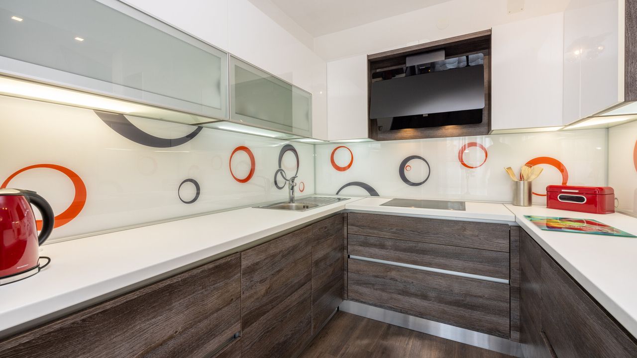 Geschirr, K and uuml;chenhandt and uuml;cher, Elektroherd, Kochplatten: 4, Backr and ouml;hre, K and uuml;hlschrank mit Gefrierfach, Filterkaffeemaschine, Wasserkocher, Toaster, Geschirrsp and uuml;lmaschine