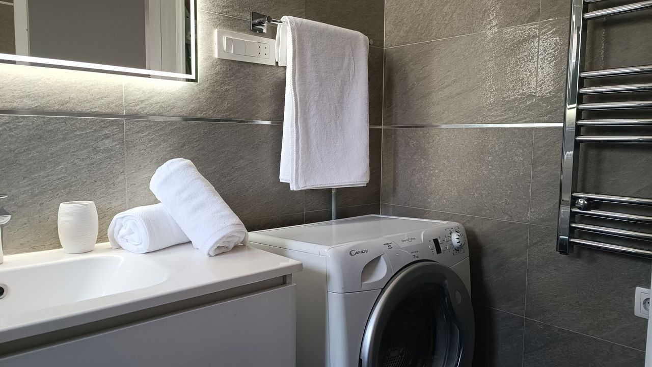 Das Apartment ist mit allen modernen Annehmlichkeiten ausgestattet, die f and uuml;r einen angenehmen Aufenthalt erforderlich sind, darunter eine Klimaanlage im Wohnbereich, eine Waschmaschine, kostenloses WLAN und ein Smart-TV f and uuml;r entspannte Stunden nach einem Tag am Strand oder beim Erkunden der Umgebung.