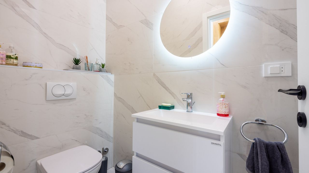 Der erste Stock bietet drei komfortable Schlafzimmer, jedes mit eigenem privaten Badezimmer. Zwei Schlafzimmer haben Zugang zu einem Balkon mit einem atemberaubenden Panoramablick auf das Meer and ndash; perfekt f and uuml;r den Morgenkaffee oder romantische Abende bei Sonnenuntergang.