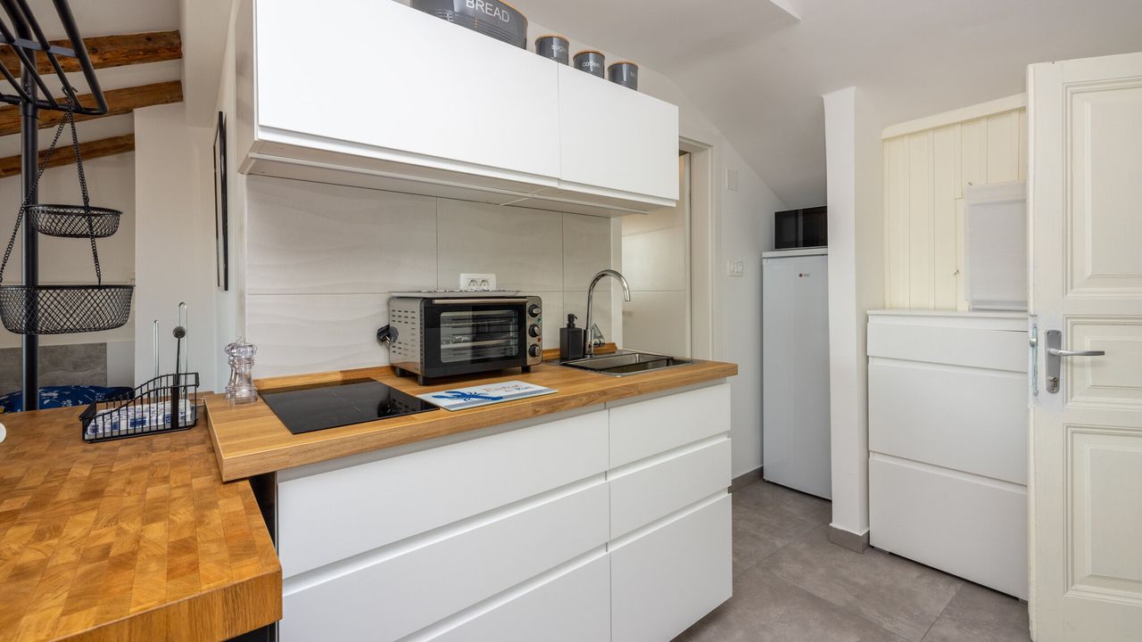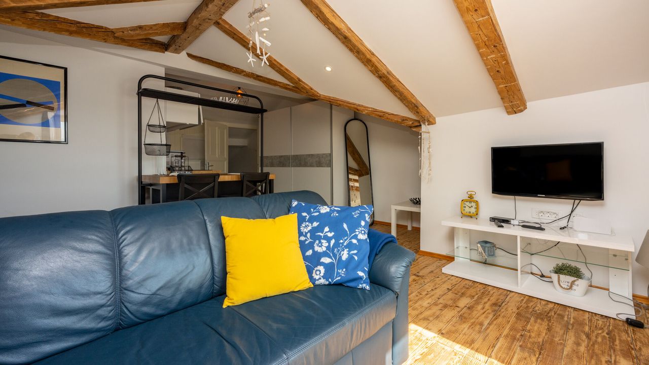 Die Wohnung befindet sich im 2. Stock, der gleichzeitig das Dachgeschoss des Hauses ist. Die Lage ist hervorragend and ndash; in unmittelbarer N and auml;he finden Sie eine B and auml;ckerei, ein Restaurant, ein Gesch and auml;ft und nat and uuml;rlich den Strand, der nur wenige Schritte entfernt liegt. Diese N and auml;he erm and ouml;glicht den G and auml;sten schnellen und einfachen Zugang zu allen wichtigen Annehmlichkeiten, ohne lange Fu and szlig;wege oder Fahrten.