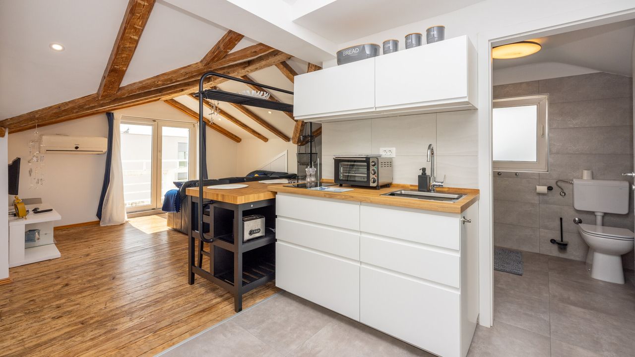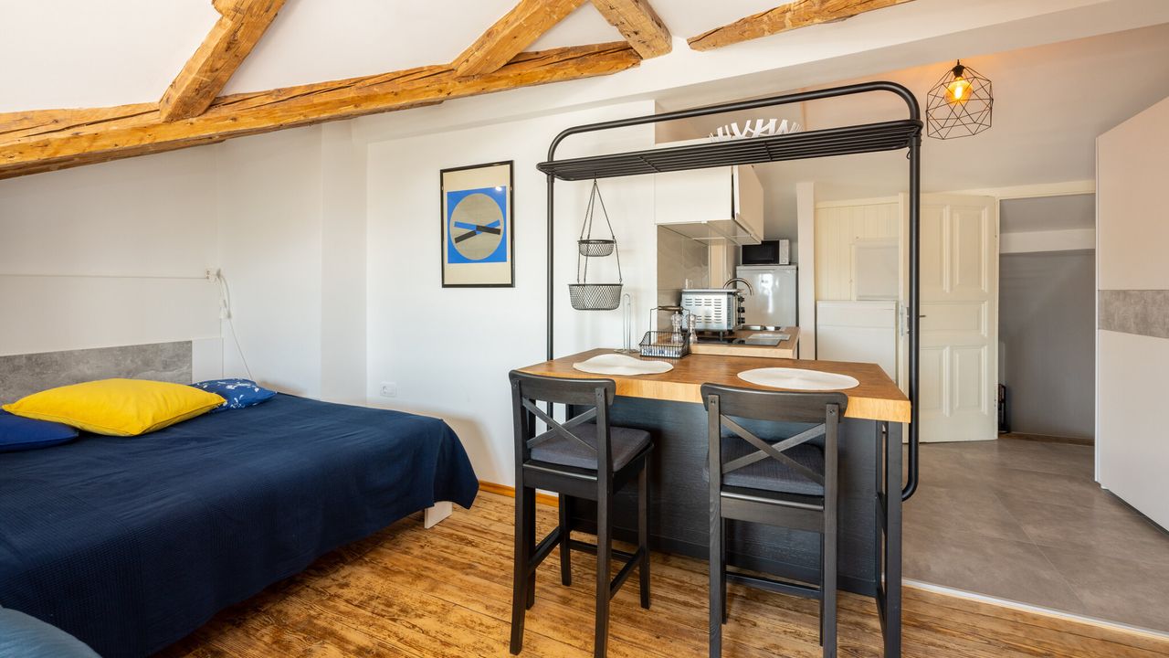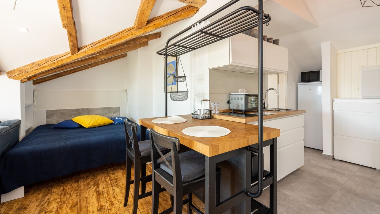 Diese wundersch and ouml;n eingerichtete Wohnung bietet alles, was Sie f and uuml;r einen angenehmen und erholsamen Aufenthalt ben and ouml;tigen.Sie besteht aus einem Wohnzimmer, Essbereich und einer K and uuml;che, die sorgf and auml;ltig zu einem funktionalen Raum kombiniert wurden, sowie einer gem and uuml;tlichen Schlafzone, die sich im selben Raum befindet. Der Raum ist modern ausgestattet und gestaltet, um den G and auml;sten maximalen Komfort zu bieten, w and auml;hrend gro and szlig;e Fenster den Innenraum mit Licht und W and auml;rme durchfluten. Das Badezimmer ist komplett neu und modern eingerichtet.
