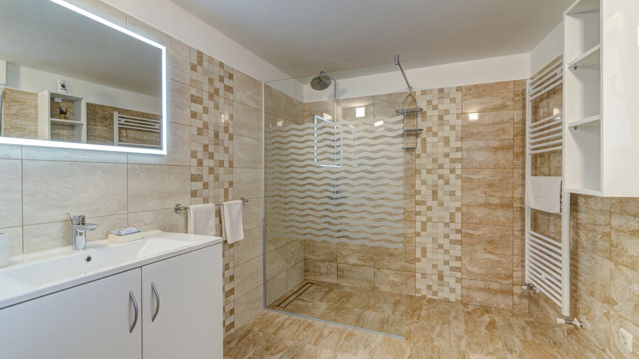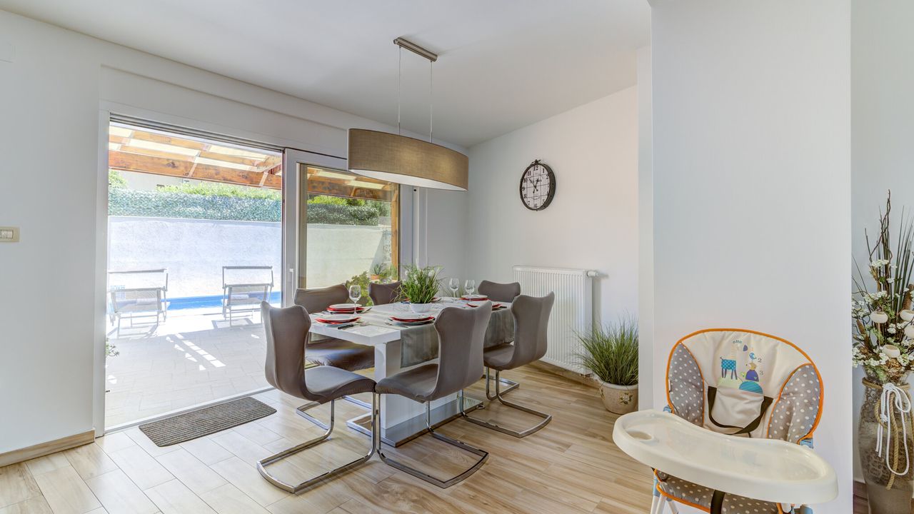 Die 245 m and sup2; Wohnfl and auml;che erstrecken sich and uuml;ber zwei Etagen. Das Erdgeschoss mit direktem Zugang zur Terrasse und zum Jacuzzi besteht aus drei komfortabel eingerichteten Schlafzimmern, die jeweils and uuml;ber ein eigenes Badezimmer verf and uuml;gen. Der obere Stock, der and uuml;ber eine Innentreppe erreichbar ist, umfasst ein weiteres Schlafzimmer, ein separates WC, ein ger and auml;umiges und helles Wohnzimmer sowie eine komplett ausgestattete K and uuml;che mit Essbereich. Von dieser Etage aus haben Sie ebenfalls Zugang zum Pool und zur Au and szlig;enterrasse mit Grill.